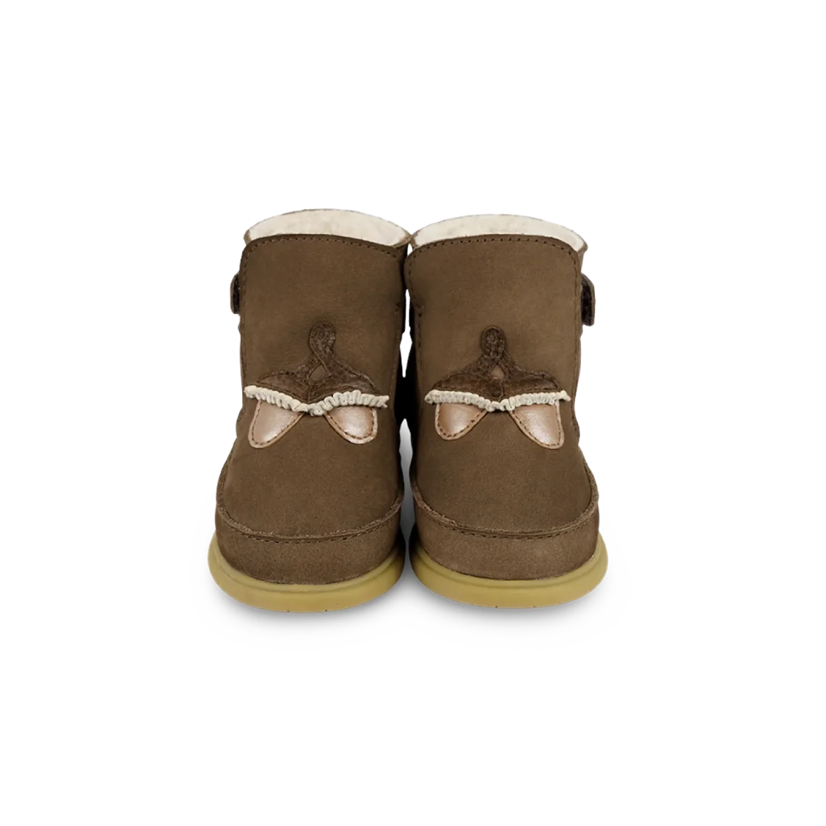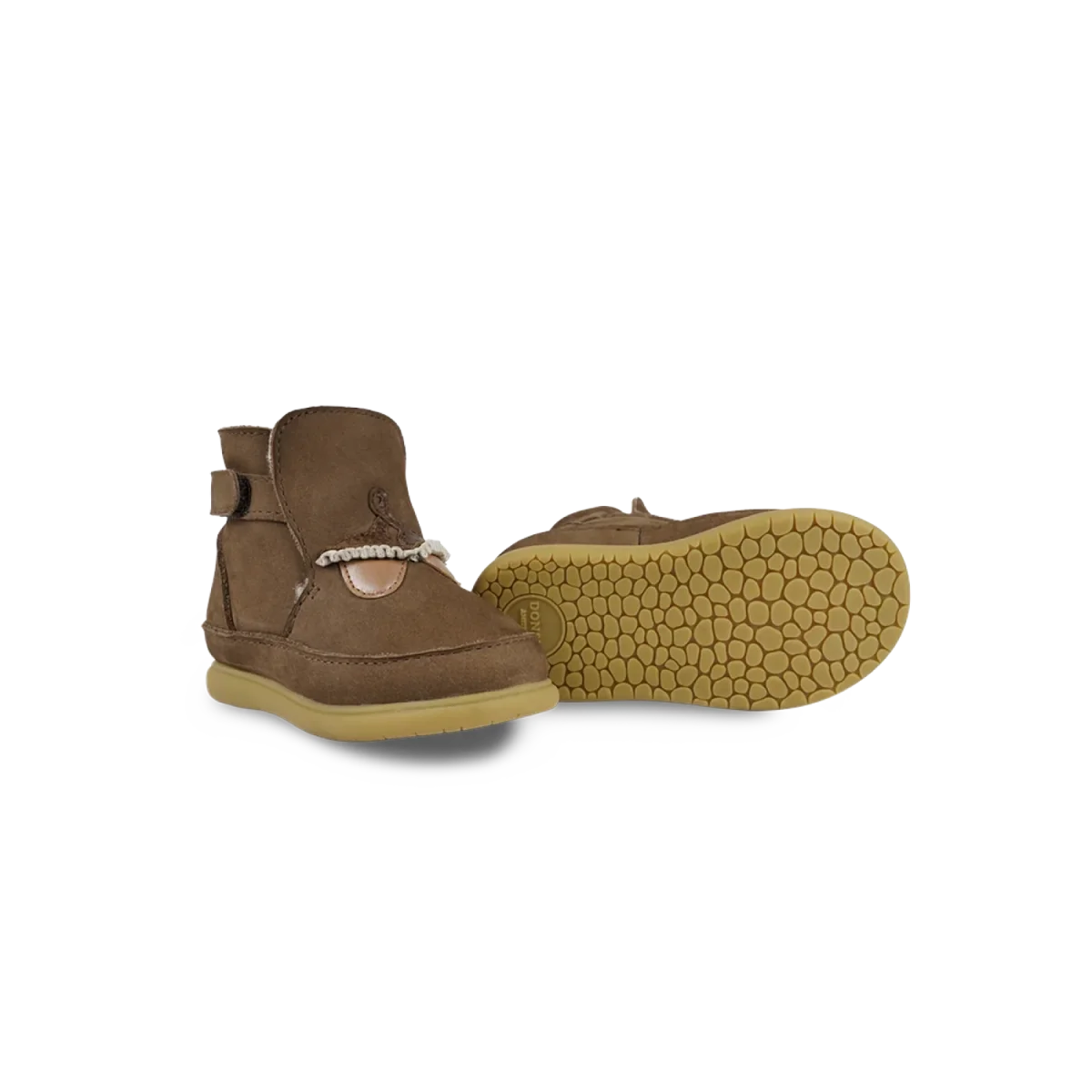 Dainty and darling! Get ready for the festivities in the cosy Abbus Shoes, complete with a leather acorn motif. These toddler shoes are the perfect companion for outdoor adventures, offering just the right support for those first steps. The flexible outsole with a slightly elevated heel provides enhanced support. The adjustable velcro fastening strap ensures a snug fit around the ankle, while the reinforced structure, particularly around the heel, provides the necessary support and stability for your little one’s growing feet.