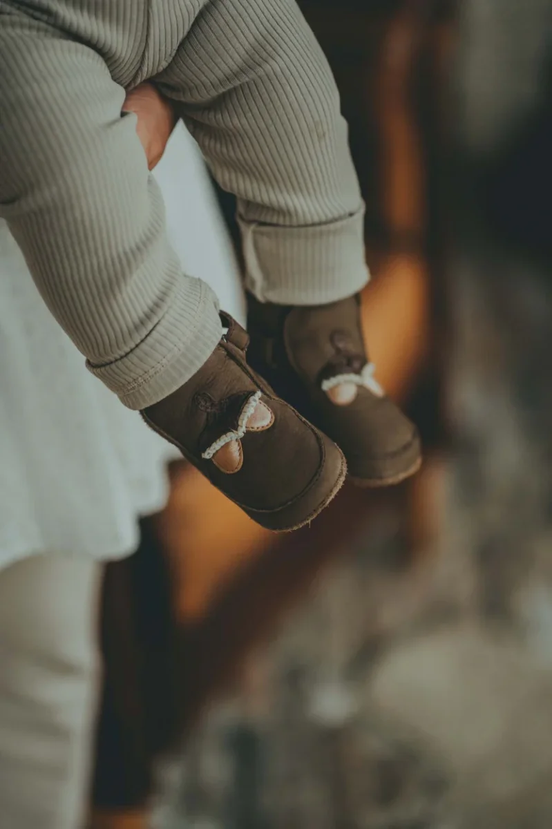 Perfect for forest walks! Step, run and jump into the festivities in the Aggas Lining shoes with the sweet winter acorn design. Fully lined with faux fur, perfect for those cold winter days!