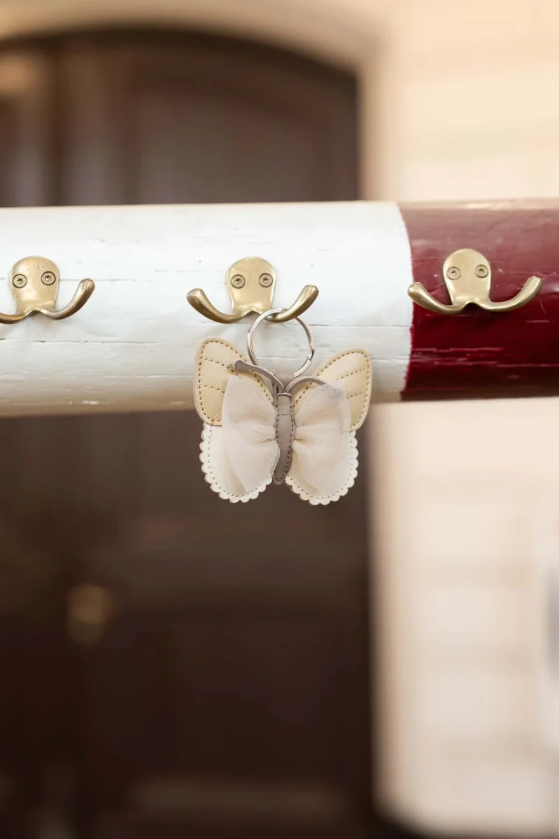 Butterfly dreams! With its beautiful butterfly design, the Alja Vlinder Chain makes the perfect gift for any occasion. Carefully crafted from metallic nubuck leather and featuring delicate tulle detailing, this keychain adds a stylish finishing touch to bags, backpacks, and more.