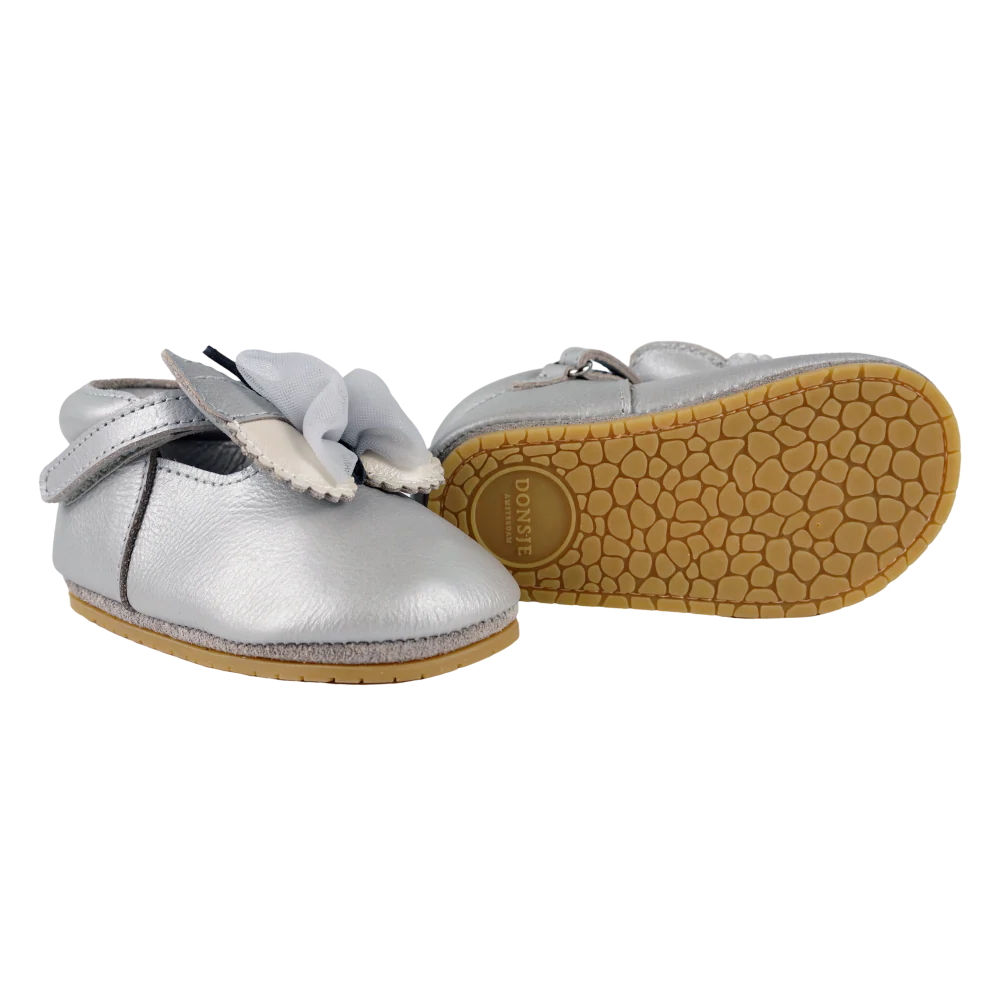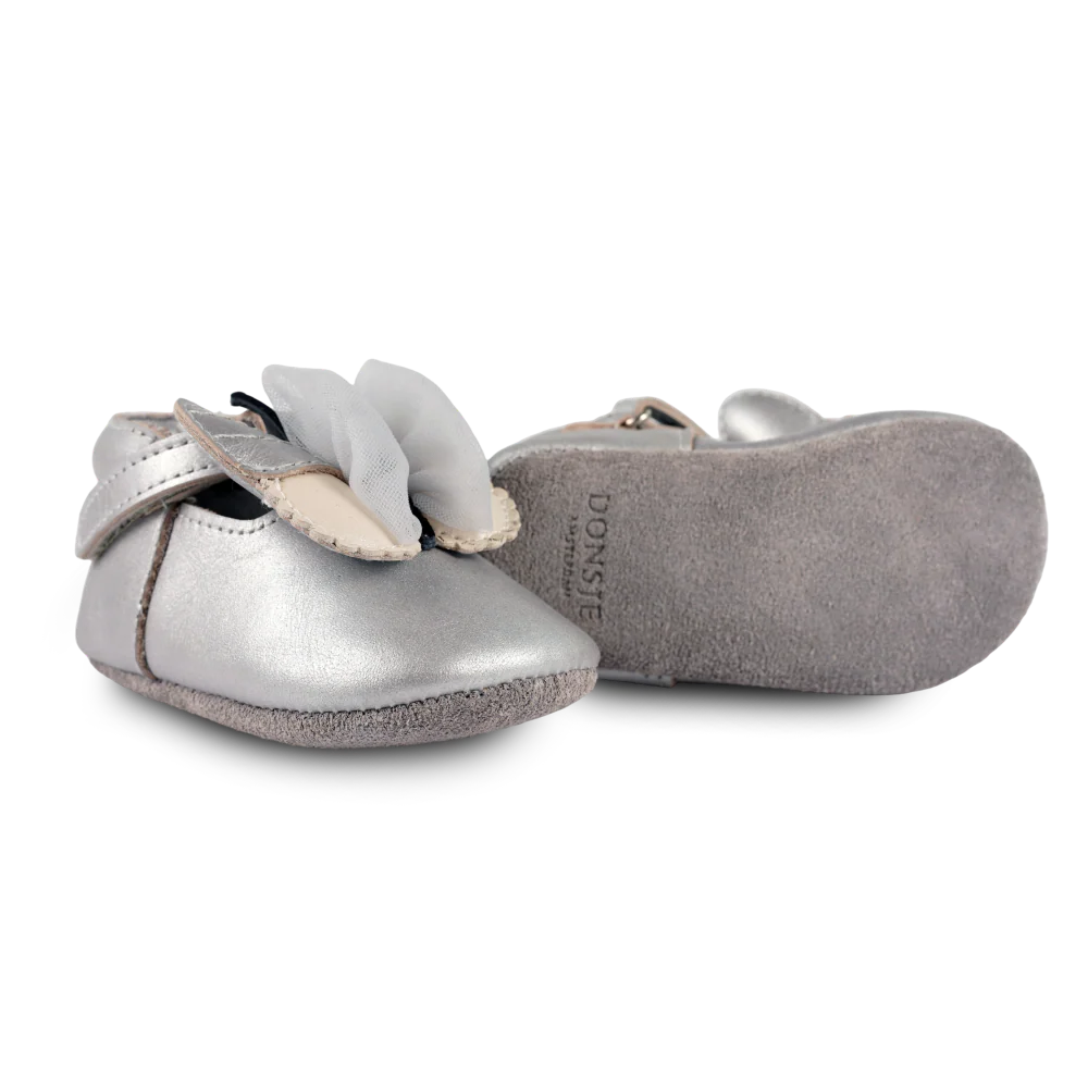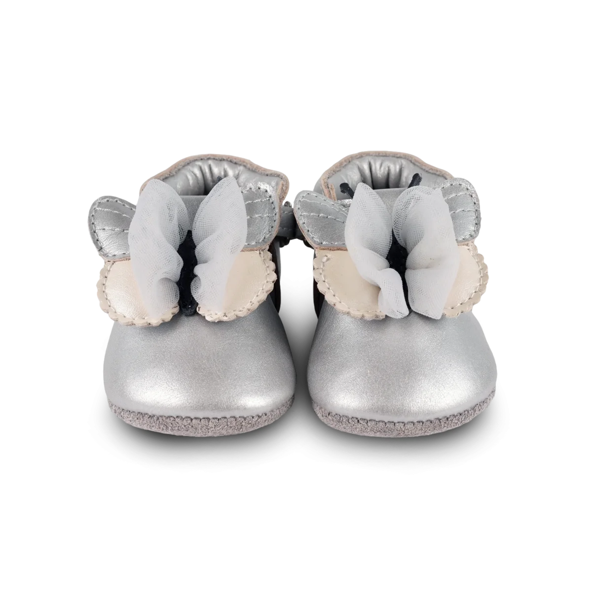 Unfold your magic! The Amdy Shoes are made with care for curious little feet. Crafted from 100% premium metallic leather with adjustable Velcro fastening straps, they feature a delicate butterfly design with tulle wings, making them a cherished wardrobe essential.