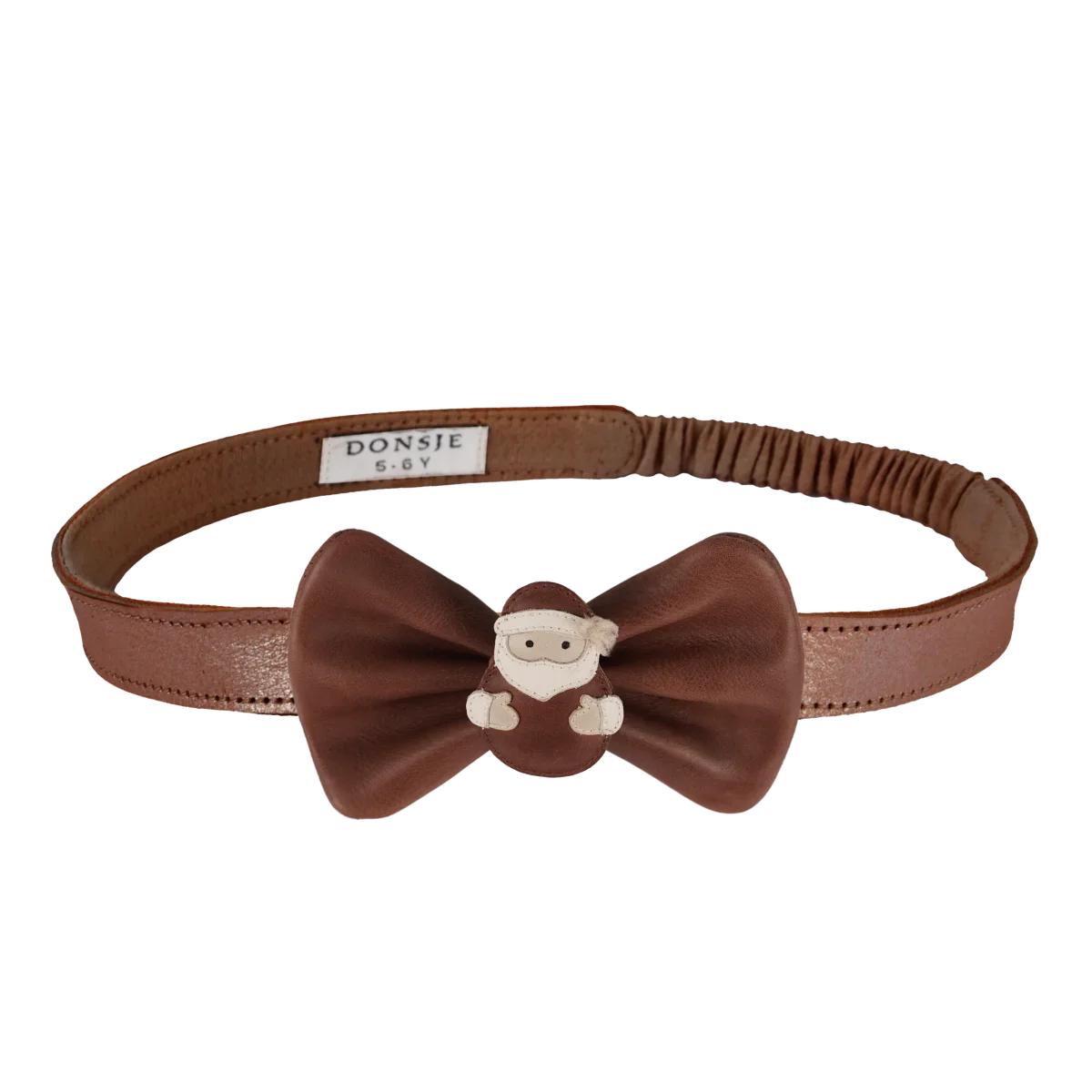 Candy cane dreams! Step into the festive season in the Banoe Headband. It will immediately put your little girl in the mood for a joyous celebration. Our signature elasticated leather design featuring Santa inspires compliments and playfully completes any outfit.