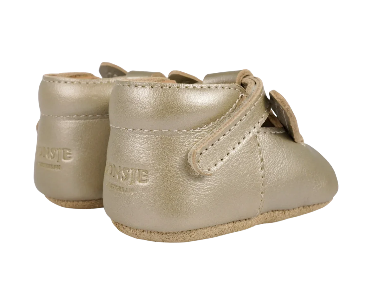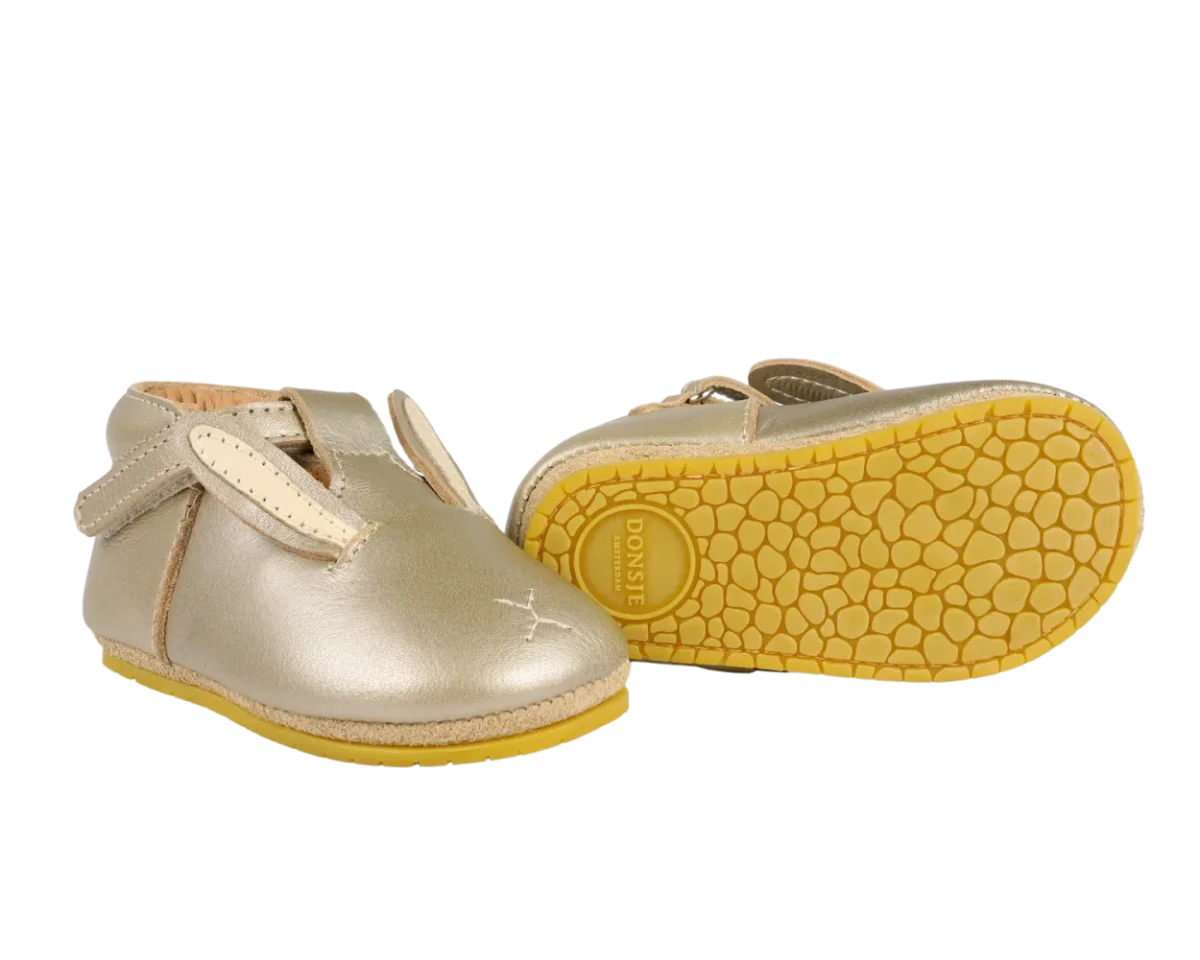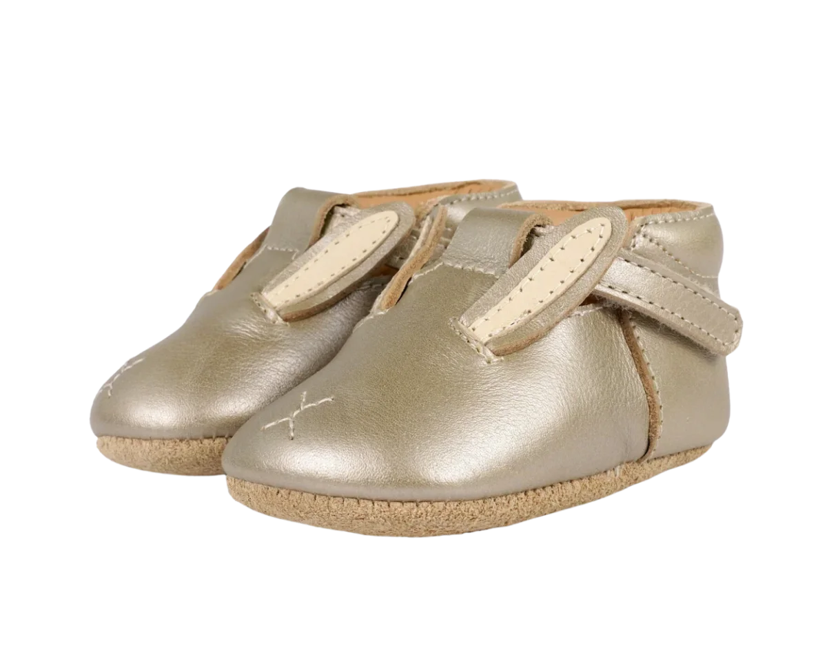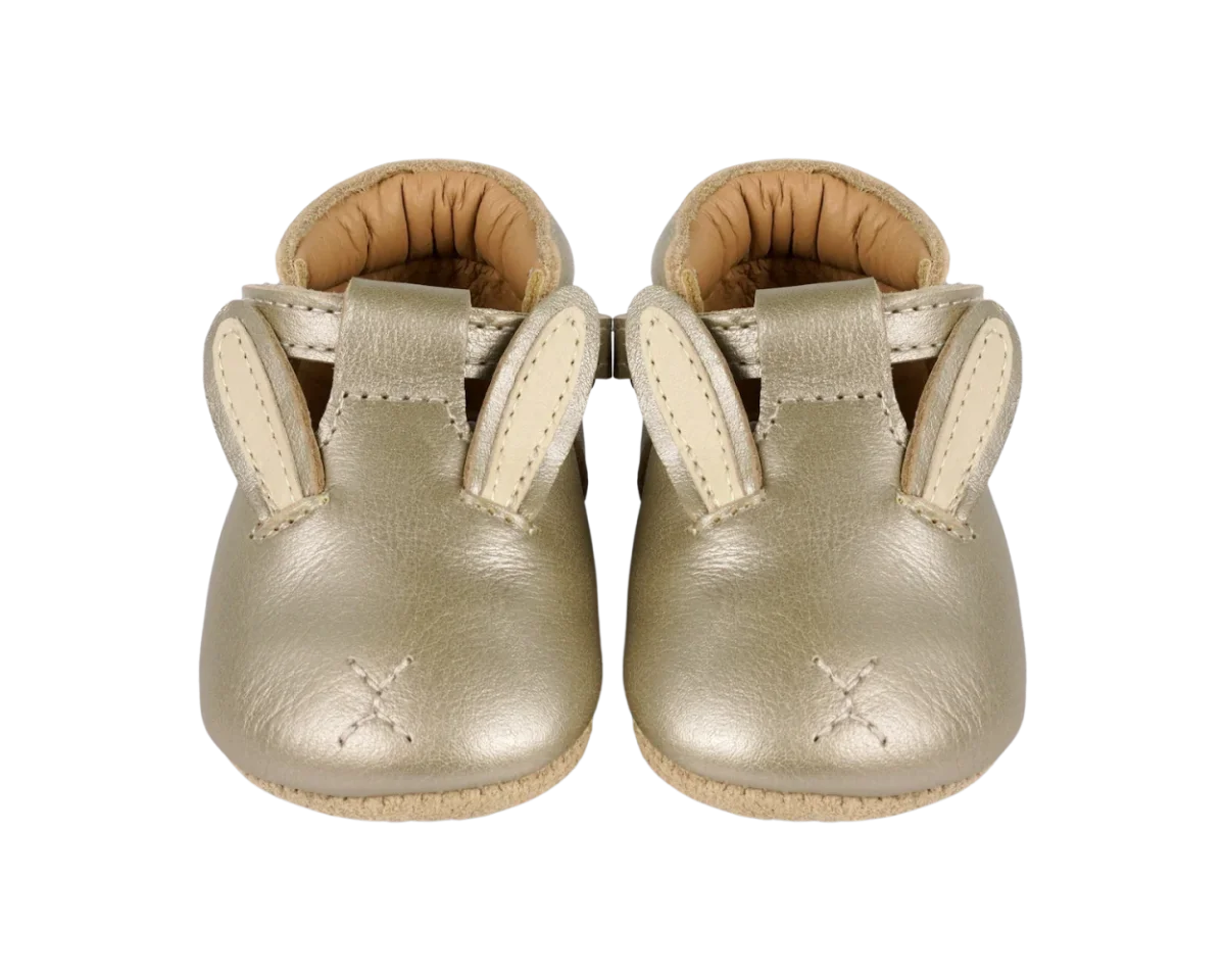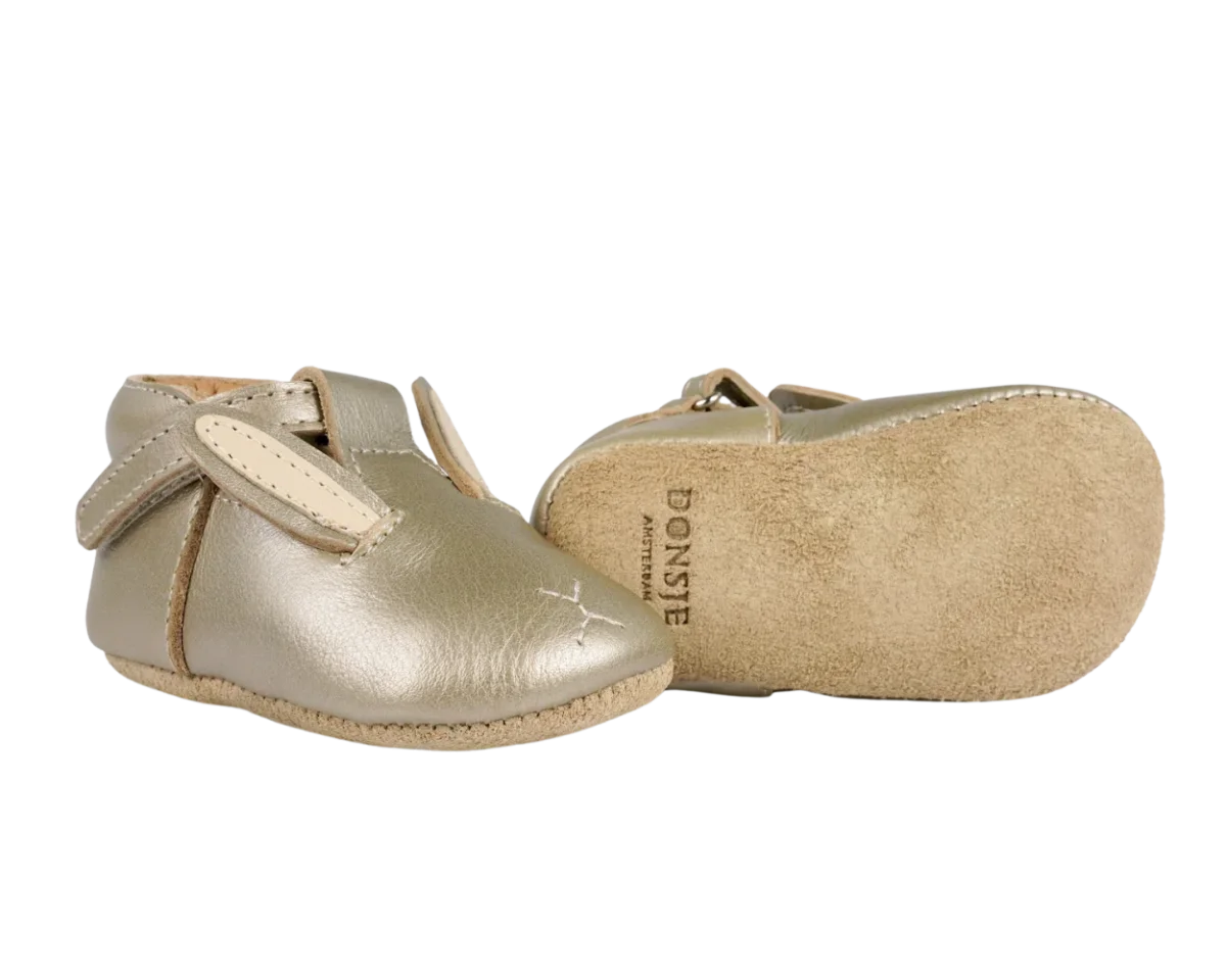 Shine for summer! The Blinc baby shoes, in soft metallic leather, are the perfect companion for your little one this summer. The adjustable velcro fastening T-bar straps ensure these sweet little shoes stay in place and support little feet, while the signature Donsje bunny character adds a touch of summer charm.