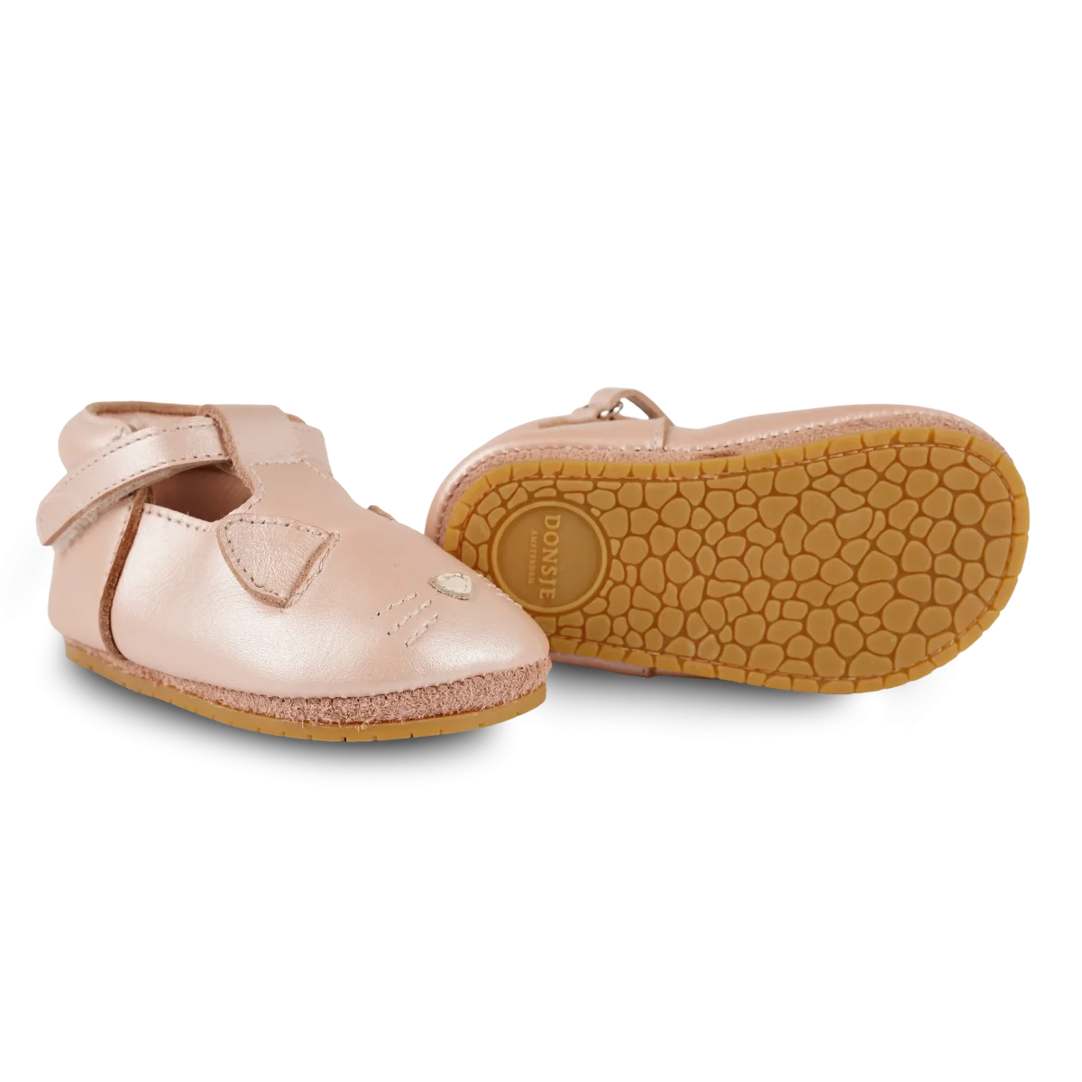 The Blinc baby shoes, in soft metallic leather, are the perfect companion for your little one this summer. The adjustable velcro fastening T-bar straps ensure these sweet little shoes stay in place and support little feet, while the signature Donsje cat character adds a touch of summer charm.