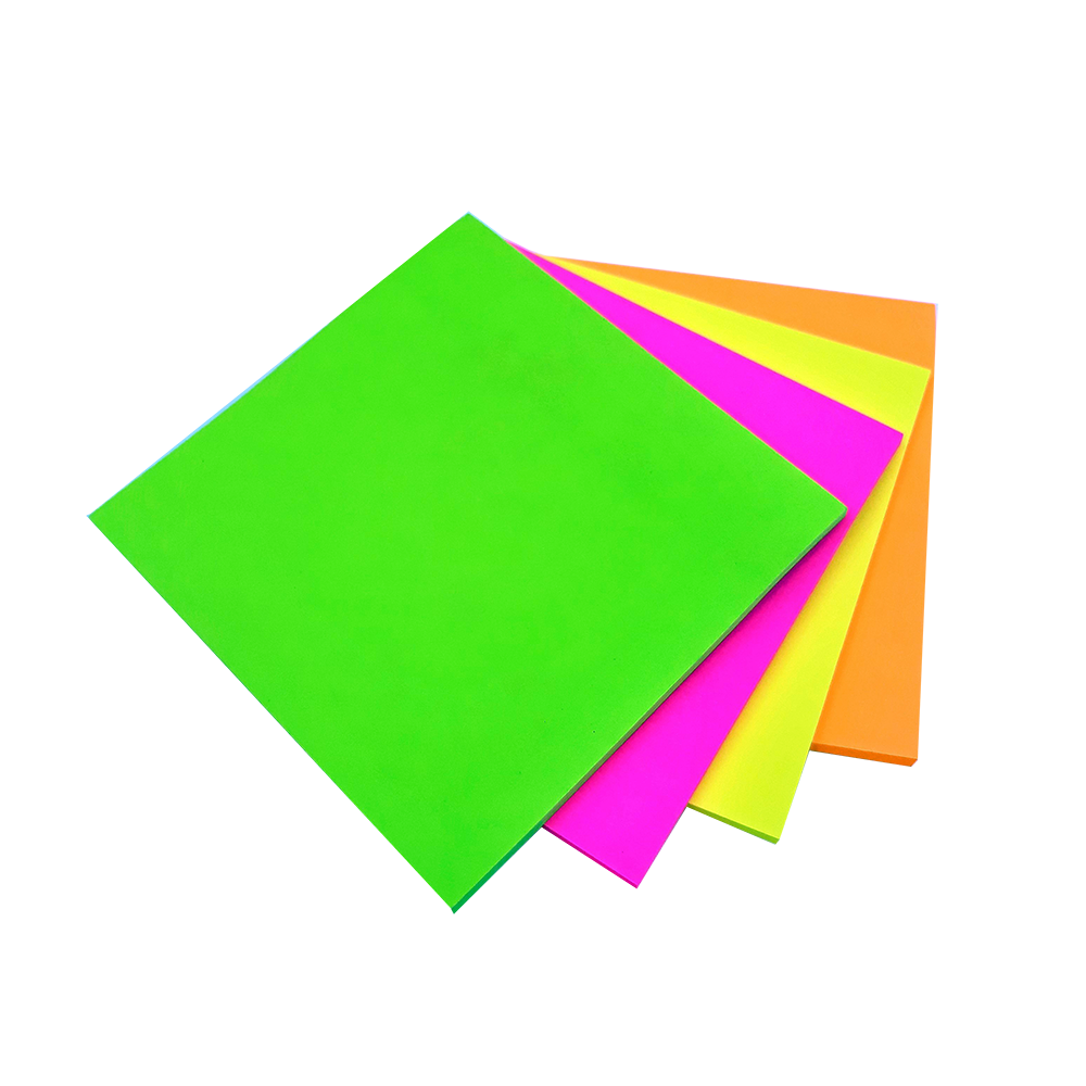PU à partir de 0,60€ Bloc de 100 feuilles 4 couleurs Format carré 76 x 76 mm. Coloris Néon : Orange, Jaune, Rose, Vert Vendu à l’unité (Bloc de 100 feuilles)