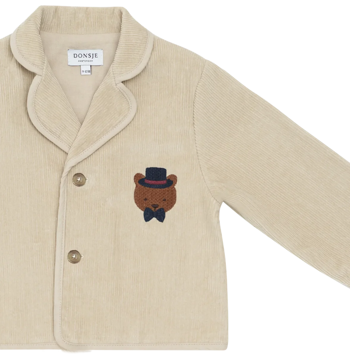 Winter festivities call for smart attire, and the Braas Blazer is just right. Featuring a classic silhouette with cosy corduroy fabric, front button fastenings along the front and a beautiful embroidered bear. For children starting from size 2-3Y, the bear is visible on the back of the blazer. In the baby sizes, the bear is on the front of the blazer.
