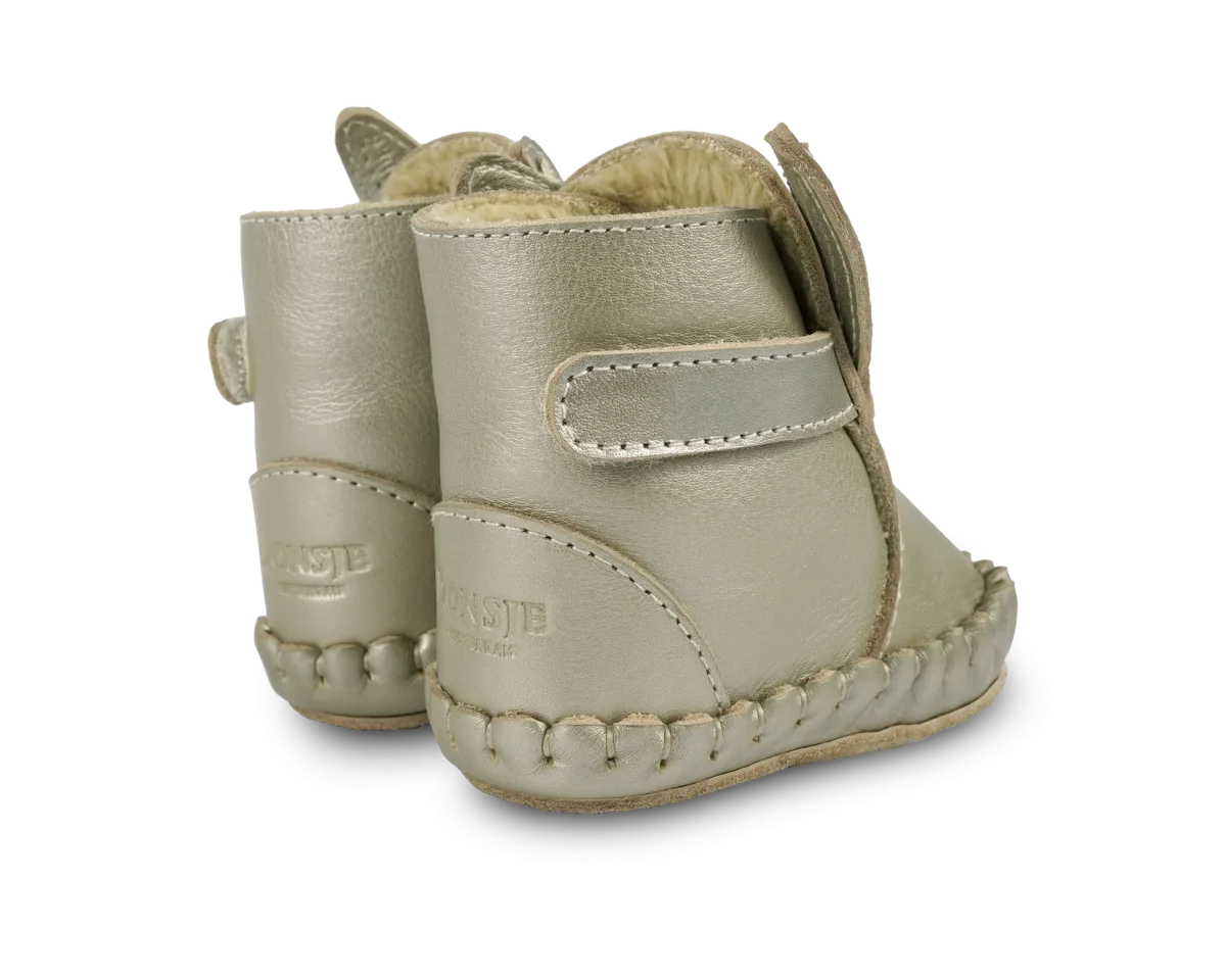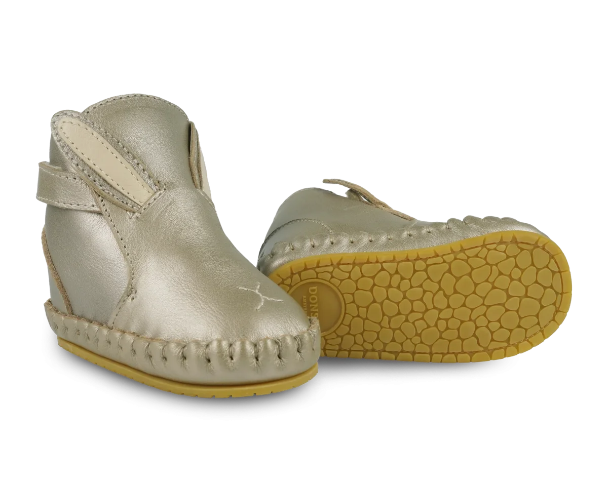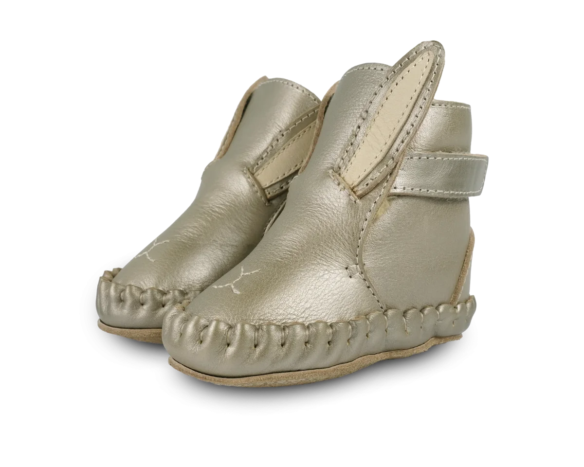 Donsje and Smallable have teamed up for a charitable project and designed this very special limited edition style! Our classic bunny design in a golden color with a soft metallic finish. These warmly lined boots have a wide entry to fit every foot. Made from 100% premium leather and complete with easy velcro fastening. Elevate […]