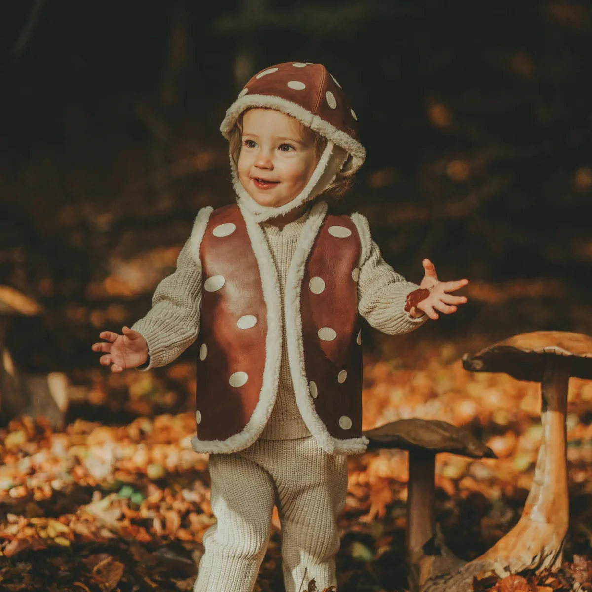 I have so mushroom in my heart for you! The Caro gilet is impossible not to notice. Thanks to its playful toadstool-inspired design, this pretty gilet will make your little one look truly adorable. Wearing the Caro gilet, your little one will bring huge smiles to everyone’s faces. Pair it with the Wald mittens for a wonderfully cosy look.