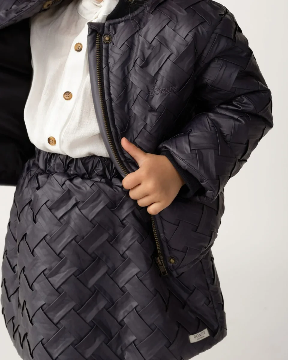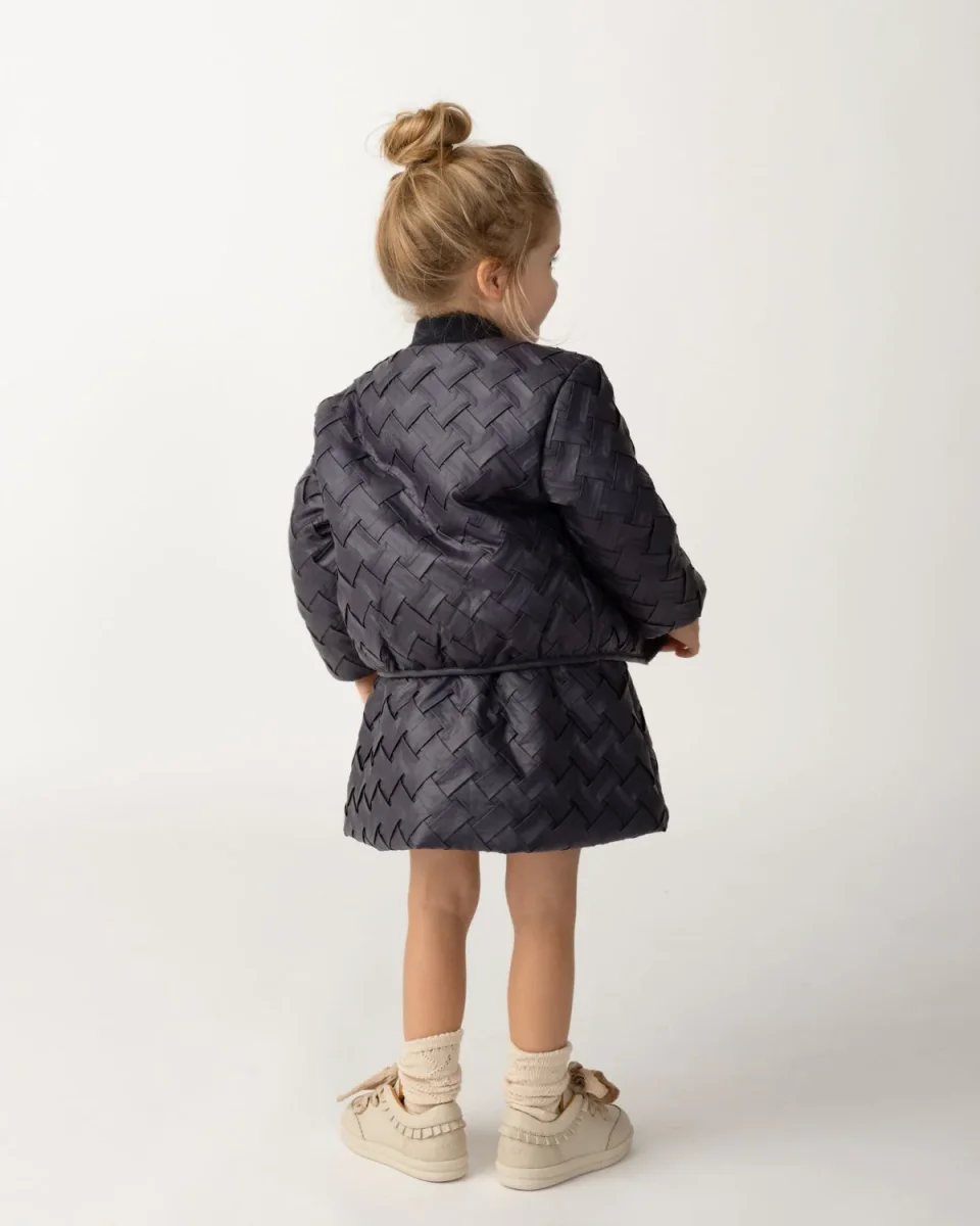 Woven magic! Approach the new season in style with the Ceasie Jacket. This uniquely beautiful outerwear piece is designed to elevate any outfit. Featuring a timeless bomber silhouette, an elegant woven design, and both a concealed zip and snap fastening down the front, this jacket is sure to become your little one’s new favourite for many joyful seasons to come.