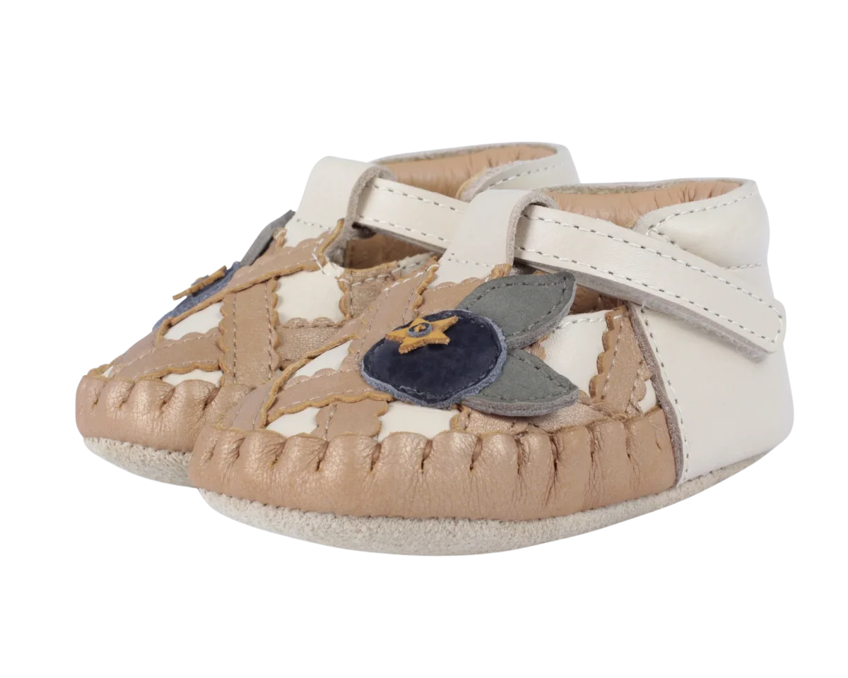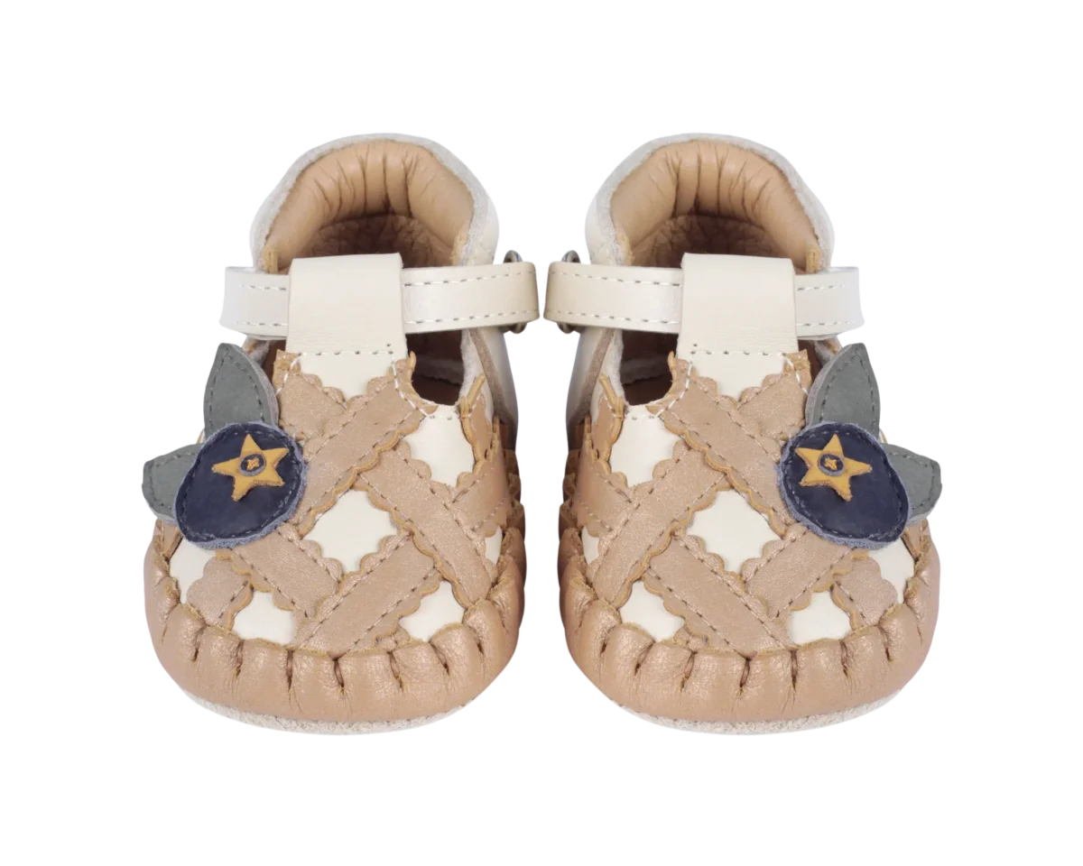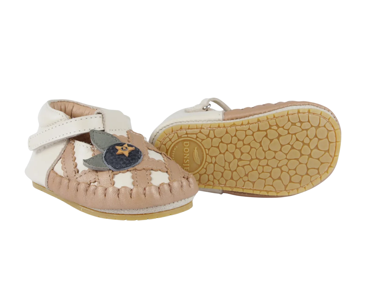 A piece of cake! The Delice shoes, featuring a playful Donsje gateau design, are made from 100% premium metallic cow leather. T-bar closure ensures comfort and fit.