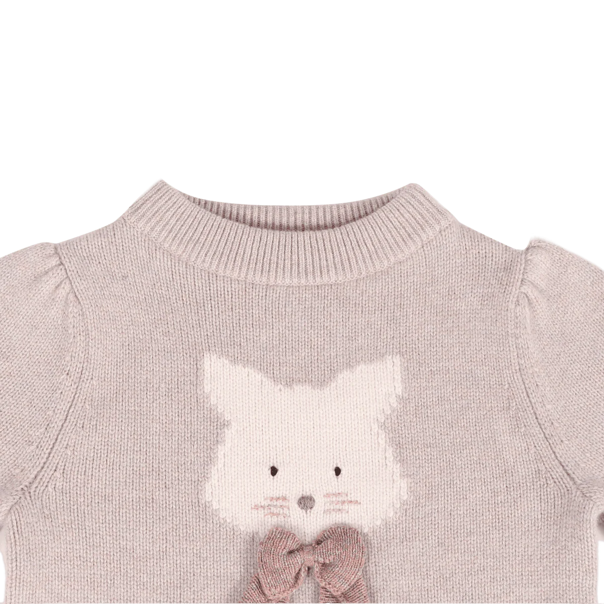 My charming little cat! The Denna Sweater is a winter essential! Easy to slip on, featuring a playful front cat embroidered character, your little one won’t want to take it off.