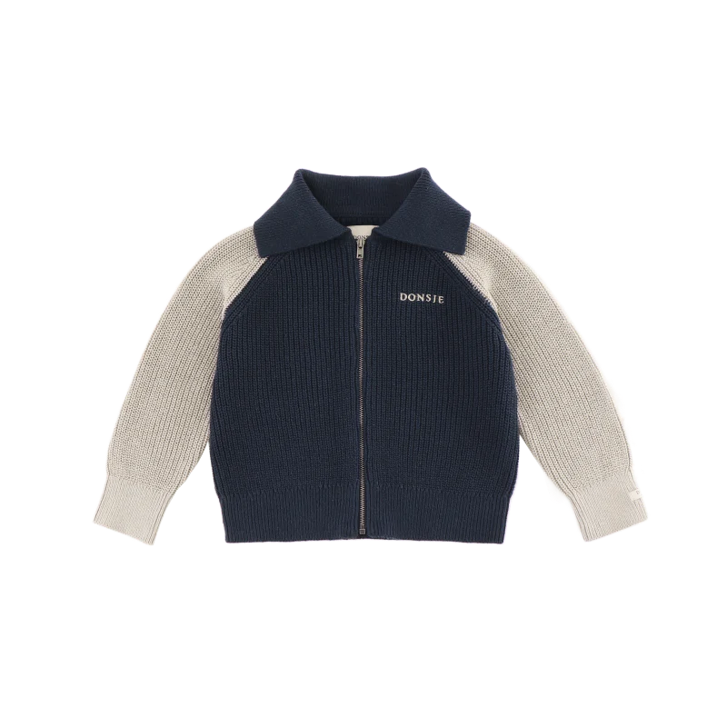 Winter essentials! The Diederic cardigan is a great cold-weather wardrobe essential. Complete with a charming sailor collar, front zip fastening, and embroidered Donsje logo, this knitted cardigan will quickly become a favourite.