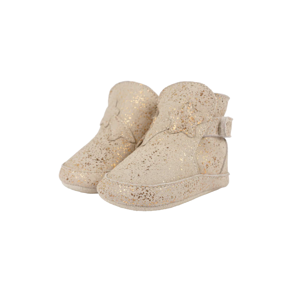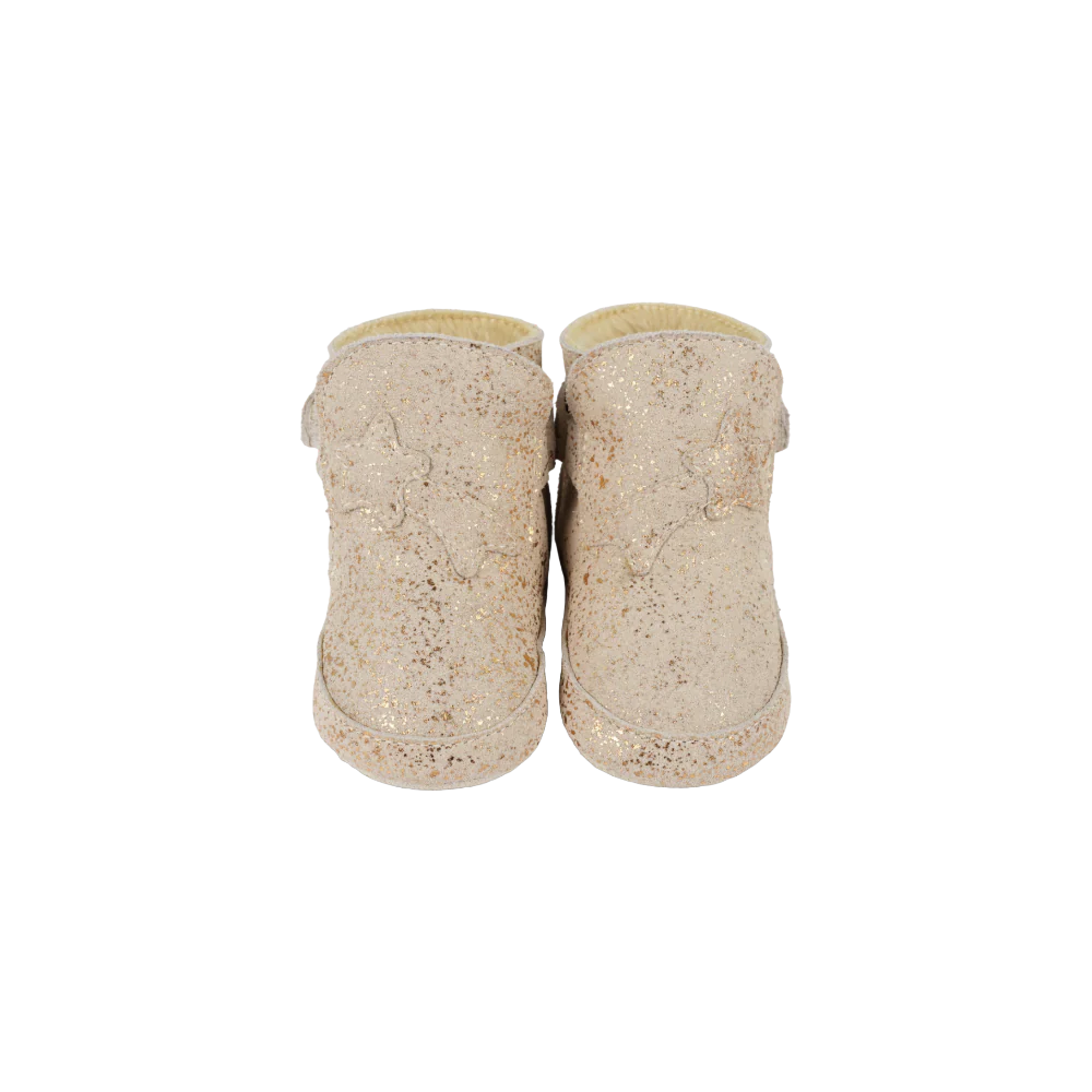 Twinkle toes ahead! The Diena booties are a dazzling choice for little dreamers. Featuring adjustable Velcro fastening straps and a shimmering star design, these booties are perfect for adding a touch of magic to tiny adventures.