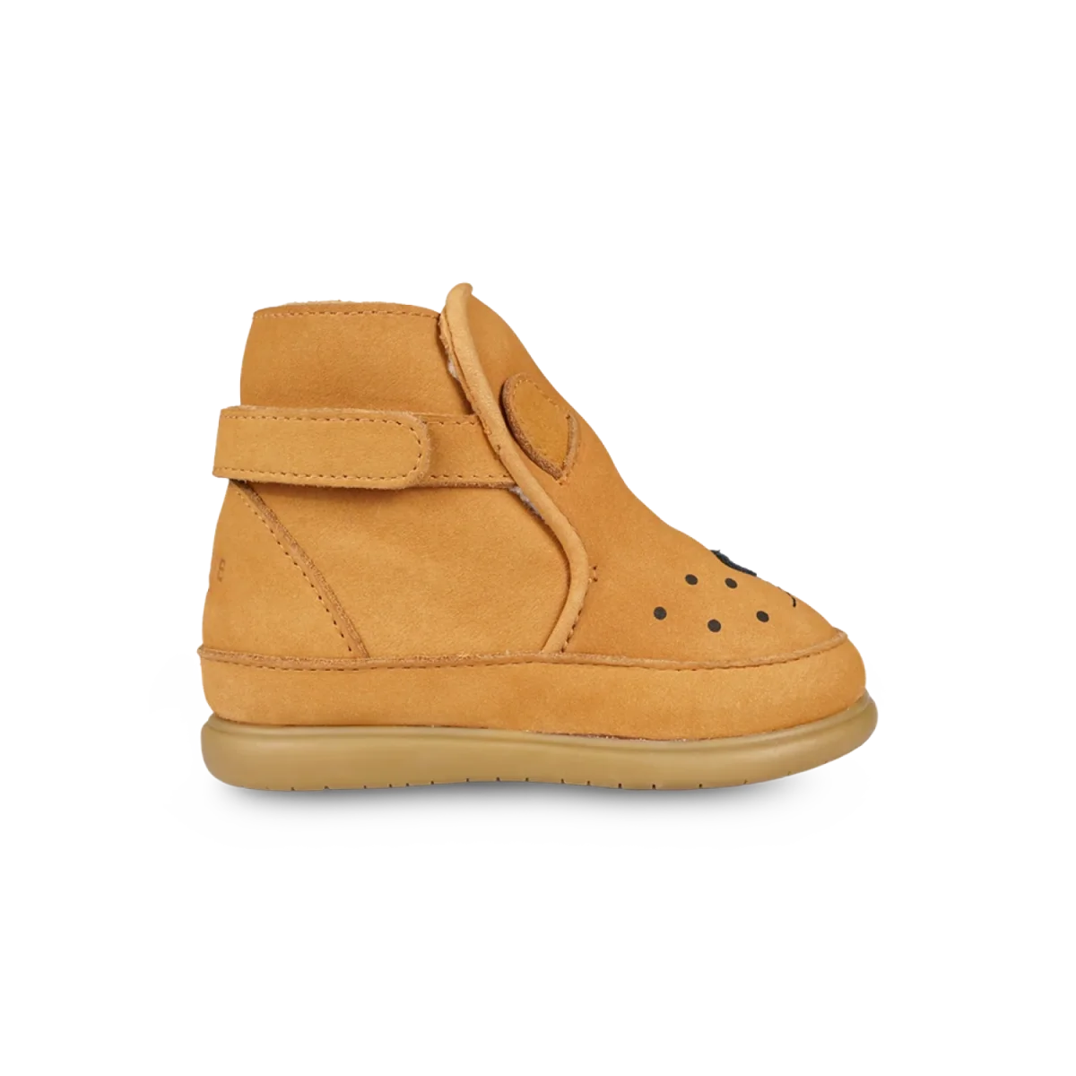 The Dubu Classic Toddler Shoes are the perfect companion for outdoor adventures, offering just the right support for those first steps. The flexible outsole with a slightly elevated heel provides enhanced support. The adjustable velcro fastening strap ensures a snug fit around the ankle, while the reinforced structure particularly around the heel, provides the necessary support and stability for your little one’s growing feet. Our signature Donsje animal characters add a stylish finishing touch to the 100% premium leather shoes.