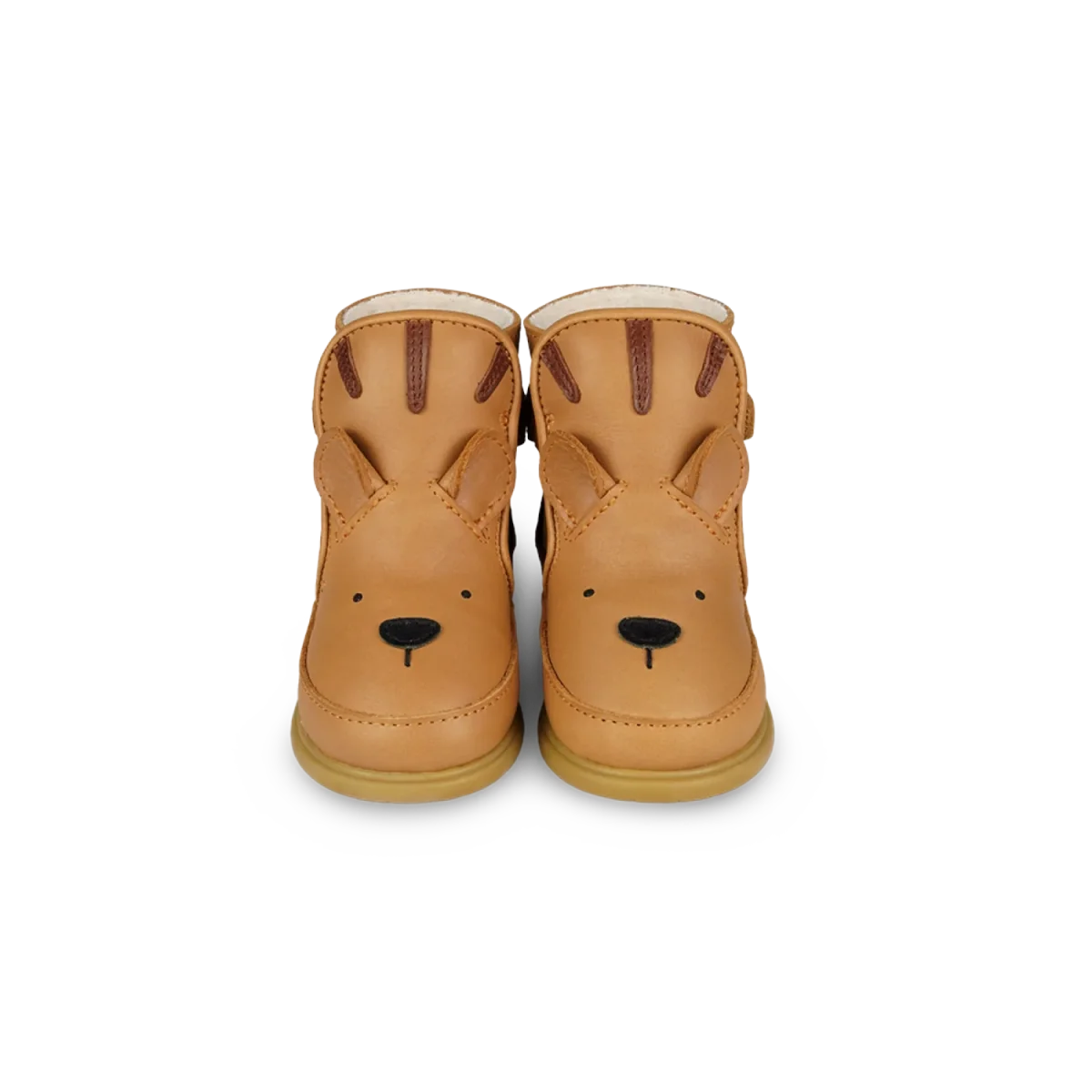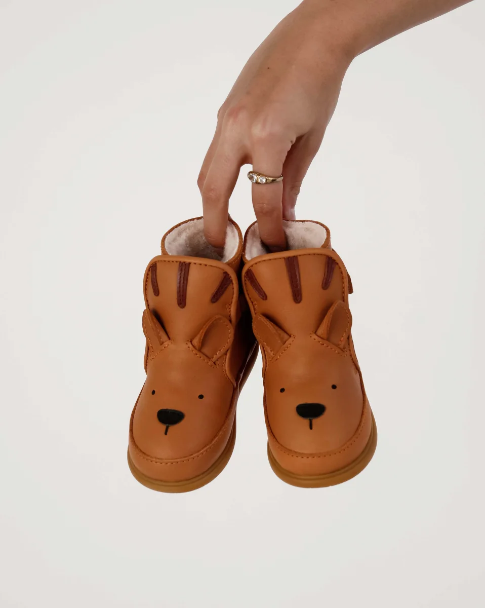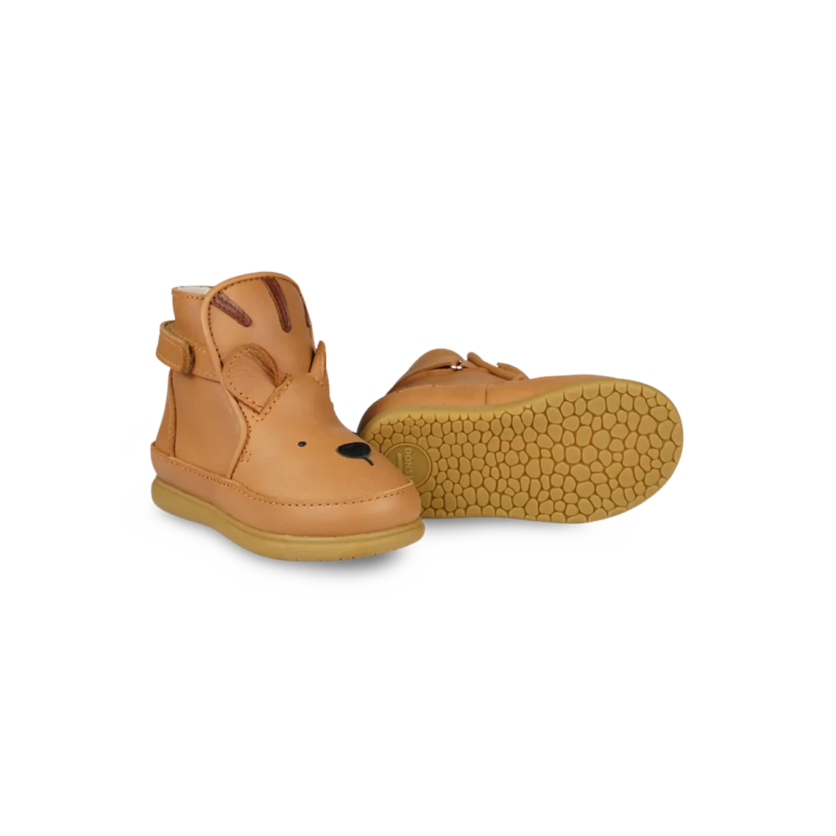 The Dubu Classic Toddler Shoes are the perfect companion for outdoor adventures, offering just the right support for those first steps. The flexible outsole with a slightly elevated heel provides enhanced support. The adjustable velcro fastening strap ensures a snug fit around the ankle, while the reinforced structure particularly around the heel, provides the necessary support and stability for your little one’s growing feet. Our signature Donsje animal characters add a stylish finishing touch to the 100% premium leather shoes.