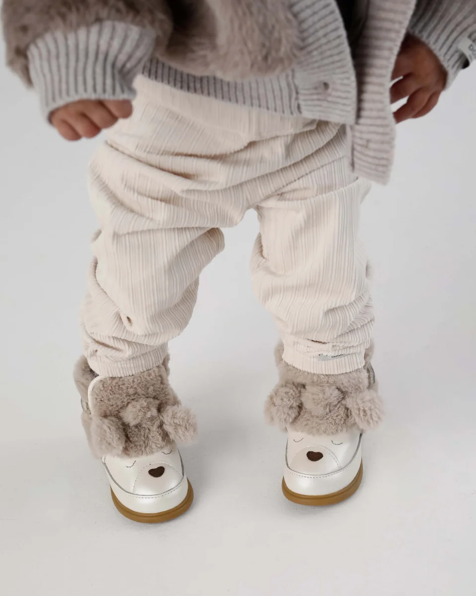 The Dubu Exclusive Toddler Shoes are the perfect companion for outdoor adventures, offering just the right support for those first steps. The flexible outsole with a slightly elevated heel provides enhanced support. The adjustable velcro fastening strap ensures a snug fit around the ankle, while the reinforced structure particularly around the heel, provides the necessary support and stability for your little one’s growing feet. The charming Donsje Poodle character adds a stylish touch to the shoes. Made from 100% premium metallic leather.