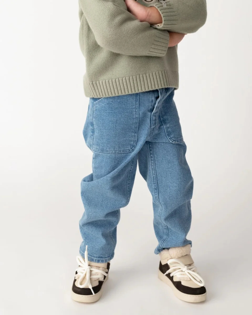 Denim dreams! The Duuc trousers in vintage blue combine style and comfort with their adjustable stretchy waistband, handy pockets, and embroidered Donsje logo.