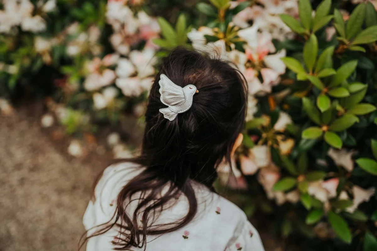 The Filoe Clip is made from 100% premium metallic leather. A sweet accessory that looks great clipped in hair or on clothes. The delightful Donsje design signals summer is on the way. The clip measures 4 cm L x 5 cm W.