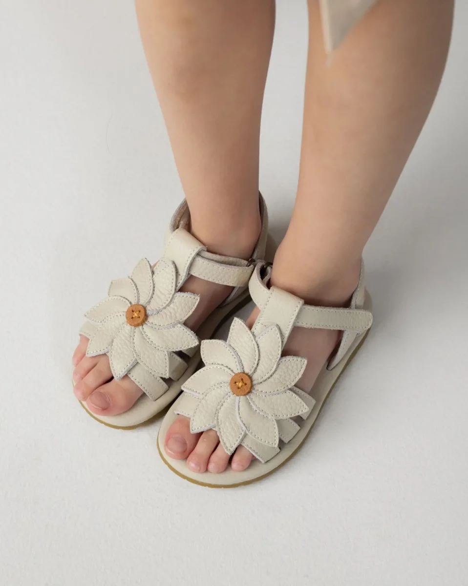 Fresh as a daisy! Enjoy the blooms! Thanks to the beautiful Donsje character, the Daisy, the Iles Fields Sandals will ignite your little one’s imagination, inviting them to explore the fields, flowers, and small bugs with new curiosity. Crafted from 100% premium leather and with 100% rubber outsoles for extra comfort, this pair has easy-to-handle, adjustable Velcro fastening straps—ideal for tiny fingers.