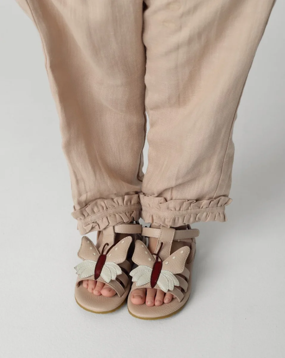 Beauti-fly! These beauti-fly leather sandals are real eye-catchers! The detailed designs are handmade, creating a special look. The sandals have an adjustable strap on the back, so they stay on wherever your little one goes. The perfect sandal!
