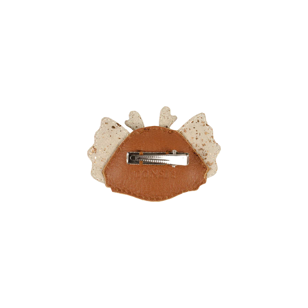 The intricate leather and metallic suede details make the Josy hairclip super adorable! Whether your little one’s lovely locks are hanging loose or fastened into an updo, this hairclip is the perfect addition to every look. Get creative; the Josy hairclip could also be used as a special accessory when clipped on clothing. The dimensions of the hairclip are 4 cm L x 5 cm W.