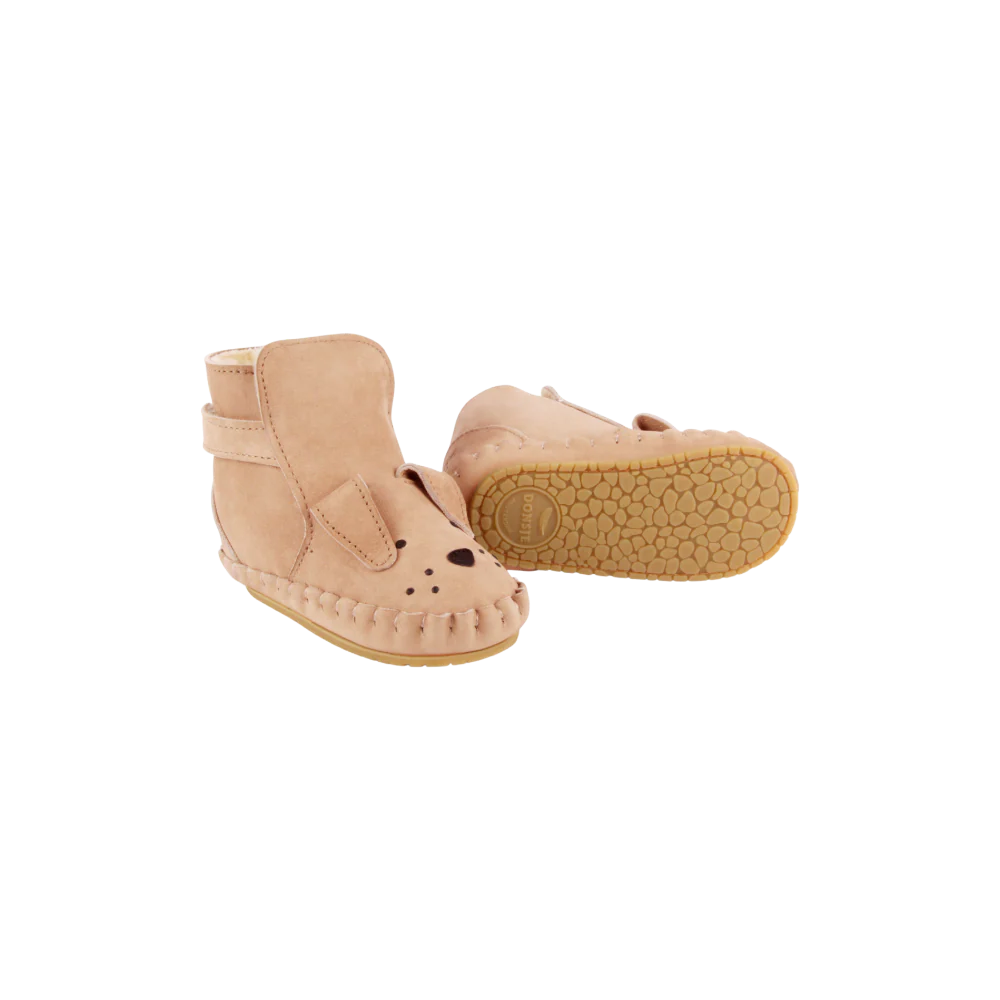 Wagtails and first steps! These warmly lined boots have a wide entry to fit every foot. Our classic Donsje characters on the toe of the shoe create an instant cute-factor! The Kapi Lining are perfect, well-fitting shoes for long-awaited first steps! Made from 100% premium leather and complete with easy velcro fastening.