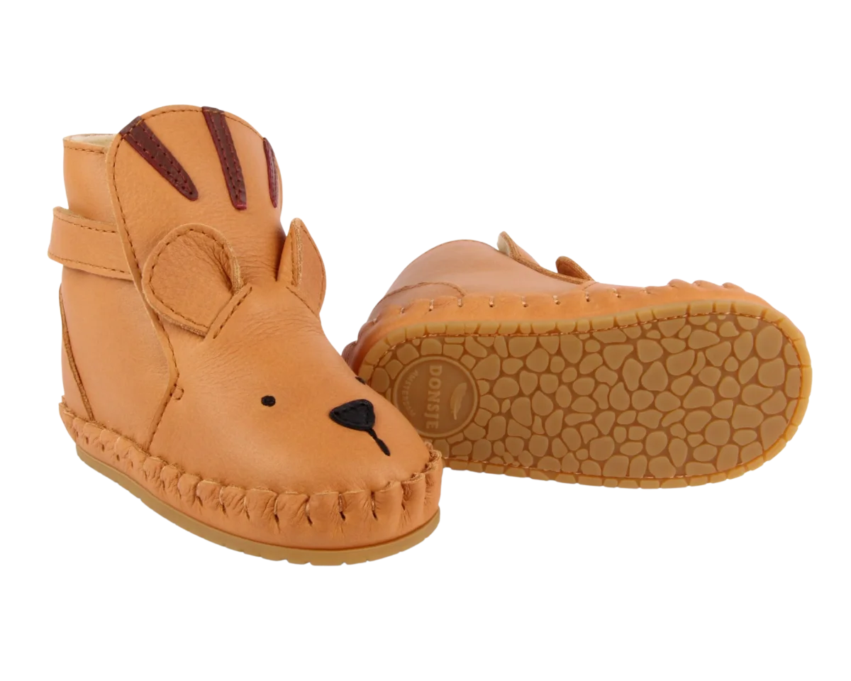 Grrrr’eat first steps! These warmly lined boots have a wide entry to fit every foot. Our classic Donsje characters on the toe of the shoe create an instant cute-factor! The Kapi Lining are perfect, well-fitting shoes for long-awaited first steps! Made from 100% premium leather and complete with easy velcro fastening.