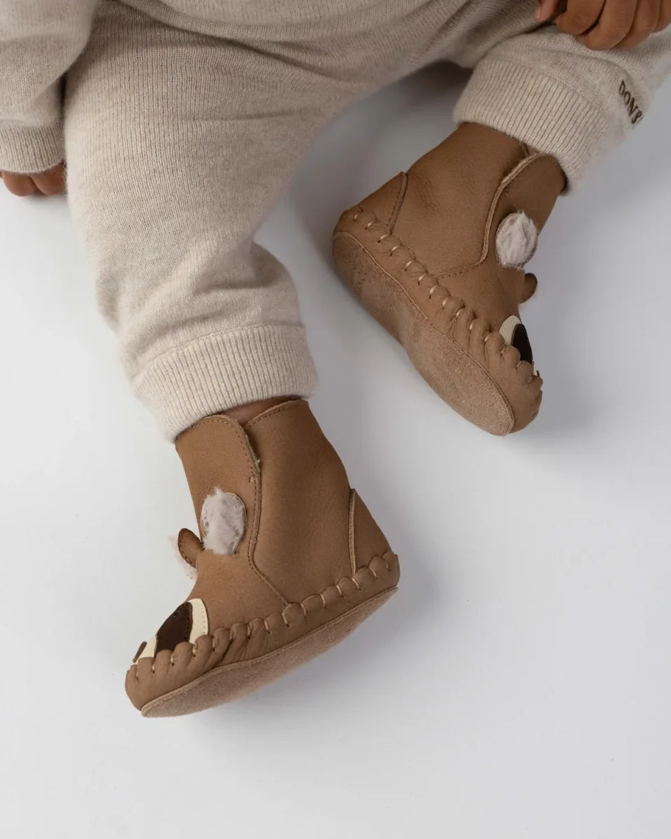 Adventure and fun! These warmly lined boots have a wide entry to fit every foot. Our classic Donsje characters on the toe of the shoe create an instant cute-factor! The Kapi Lining are perfect, well-fitting shoes for long-awaited first steps! Made from 100% premium leather and complete with easy velcro fastening.