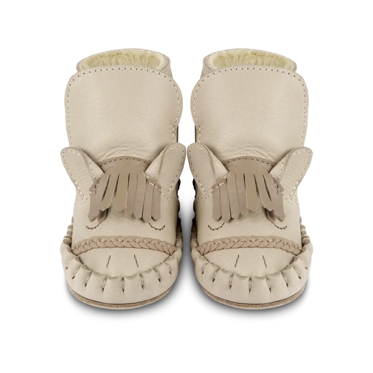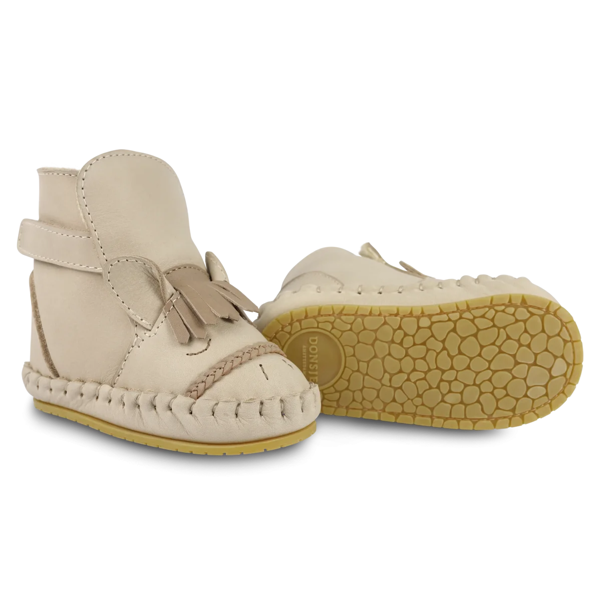 These warmly lined boots have a wide entry to fit every little foot. Our signature Donsje character, a Horse, on the toe of the shoe adds a unique, eye-catching detail to the design! The Kapi Special booties are perfect, well-fitting shoes for long-awaited winter walks! Made from 100% premium leather.
