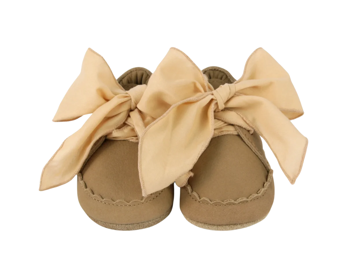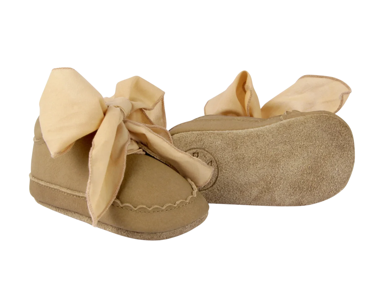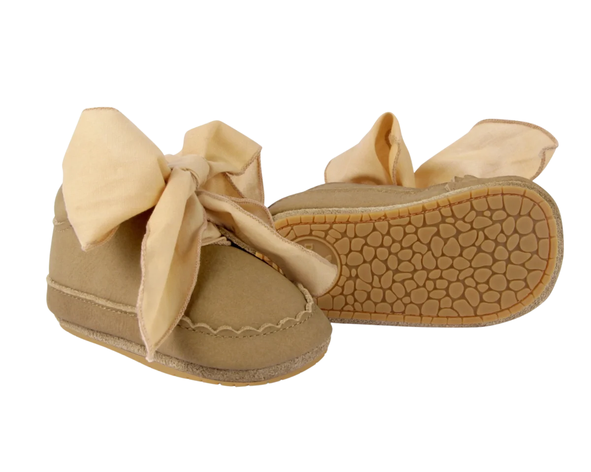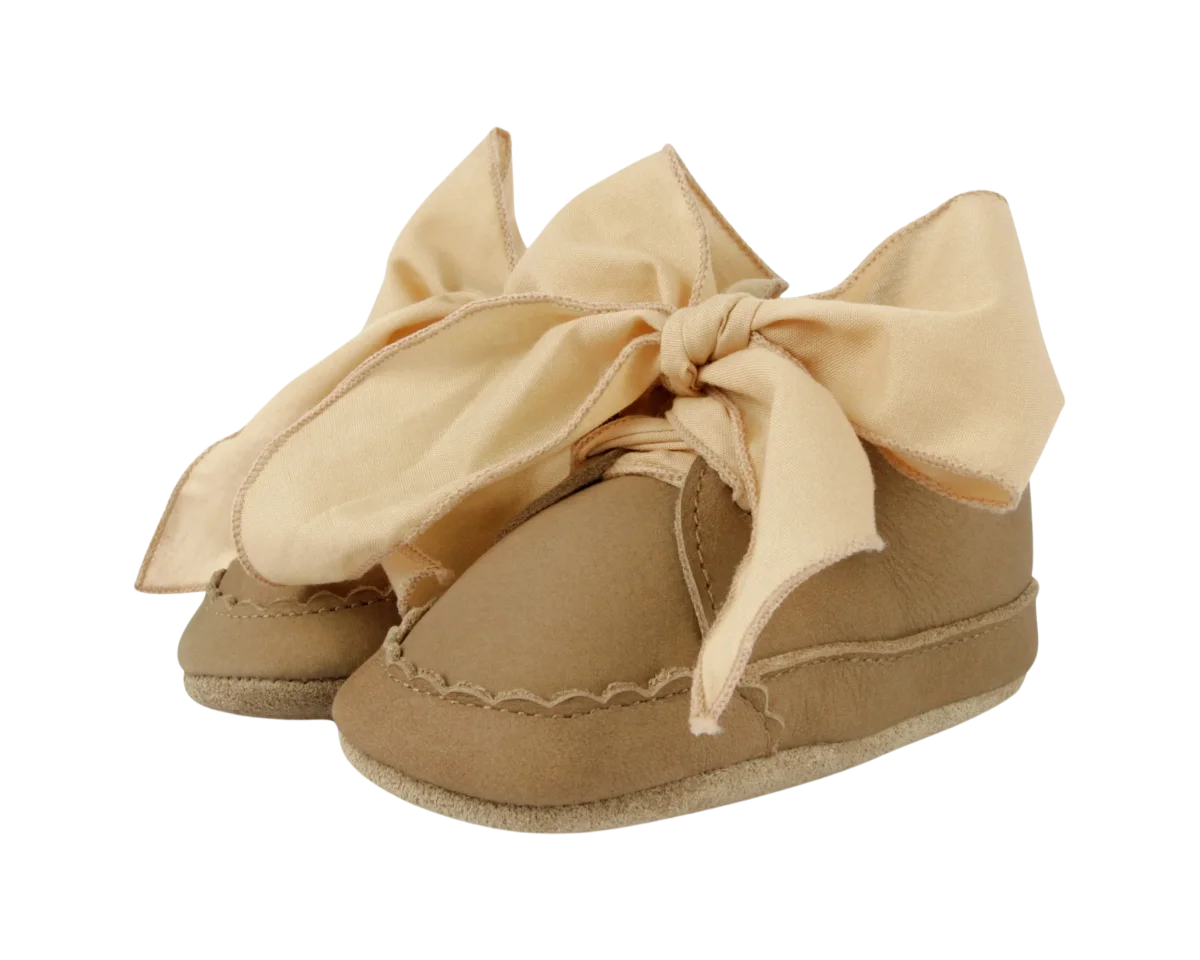 Sweet tiny steps! The cutest and most comfortable shoes for your little girl’s first steps. They are made from the softest premium leather and finished with small wavy edges. A beautiful chiffon bow gives a stylish finishing touch.