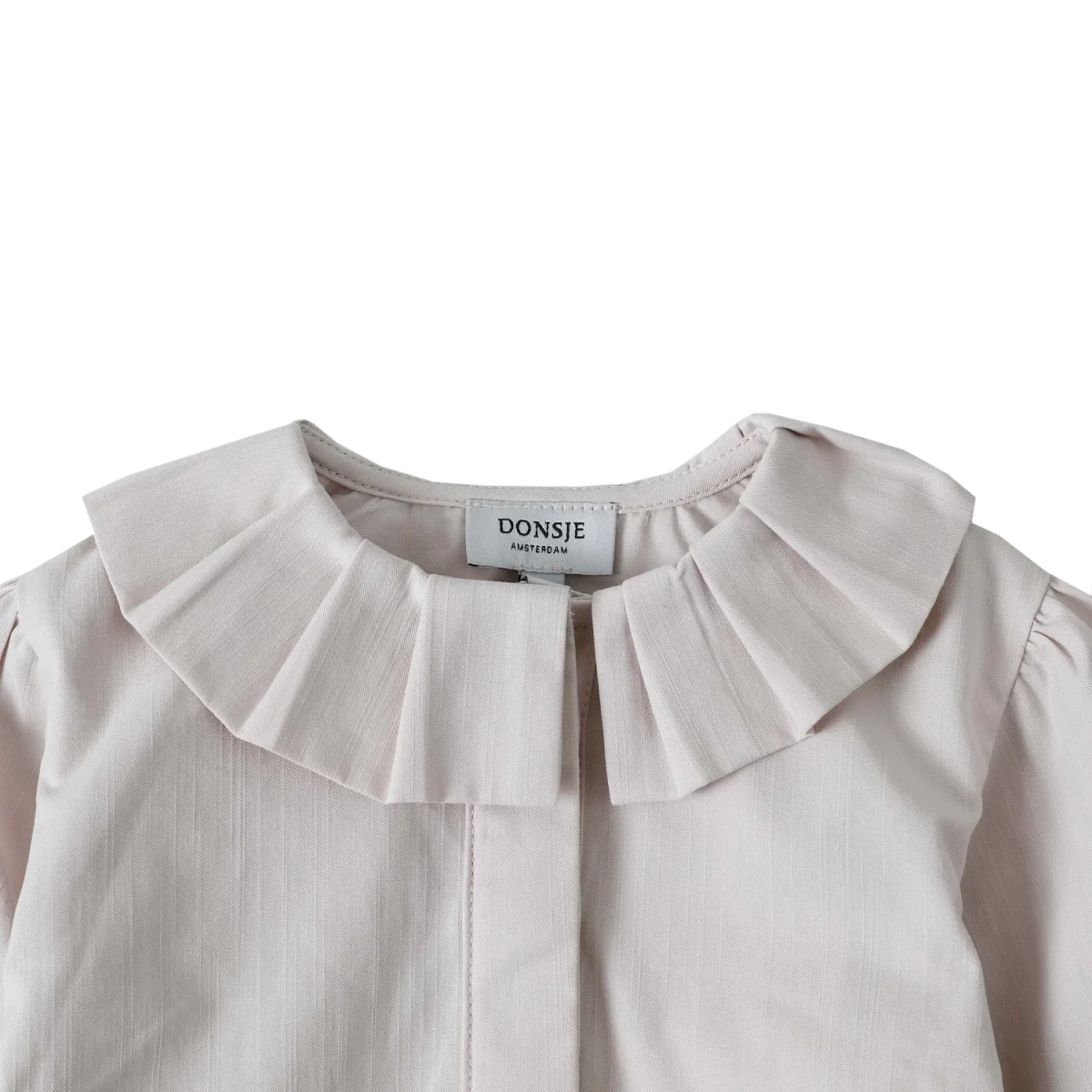 The Lora blouse is a chic addition to the little wardrobe. The beautiful ruffled collar, puffed sleeves and front fold detail offer unique and stylish touches to the blouse. Put it on and let your little one dazzle everyone around her!