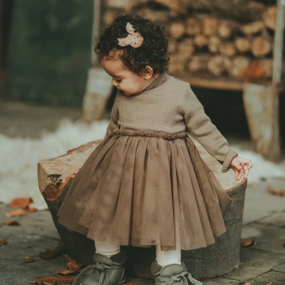 Ballerina dreams! This beautiful dress with a tulle skirt will turn your baby girl into a fairy! The knit top with a high neck will make sure your little girl stays warm and looks lovely during Christmas. This dress will be a wardrobe favourite in no time!