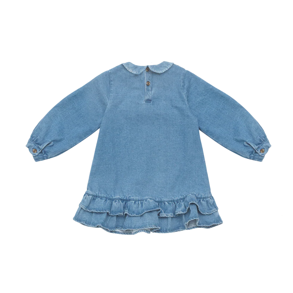 Cold season charm! The Luus dress has a timeless A-line silhouette. Featuring button fastenings along the back and at the sleeves, the dress has a tiny collar and a beautiful skirt. This dress runs large.
