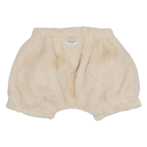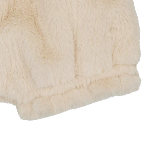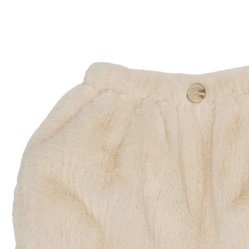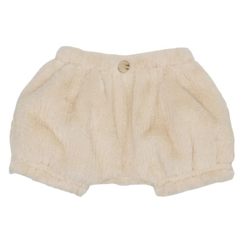 Faux fur winter fun! The Mou bloomers are a winter wardrobe essential. Fully lined for warmth, featuring a stretchy waistband, decorative front fastening, and elasticated leg openings. The soft faux fur finish is beyond adorable; pairs perfectly with the Maudi Romper.