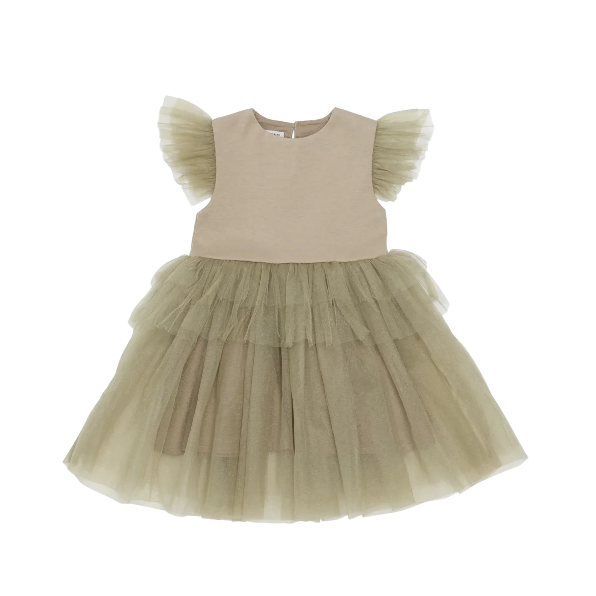 Festivities await! Irresistibly beautiful, the Nena Dress is ideal for summer festivities and big celebrations. Made with cotton and lined with layers of weightless tulle, this slip-on dress has a button fastening at the back and butterfly sleeves—the perfect dress for a young lady’s party!