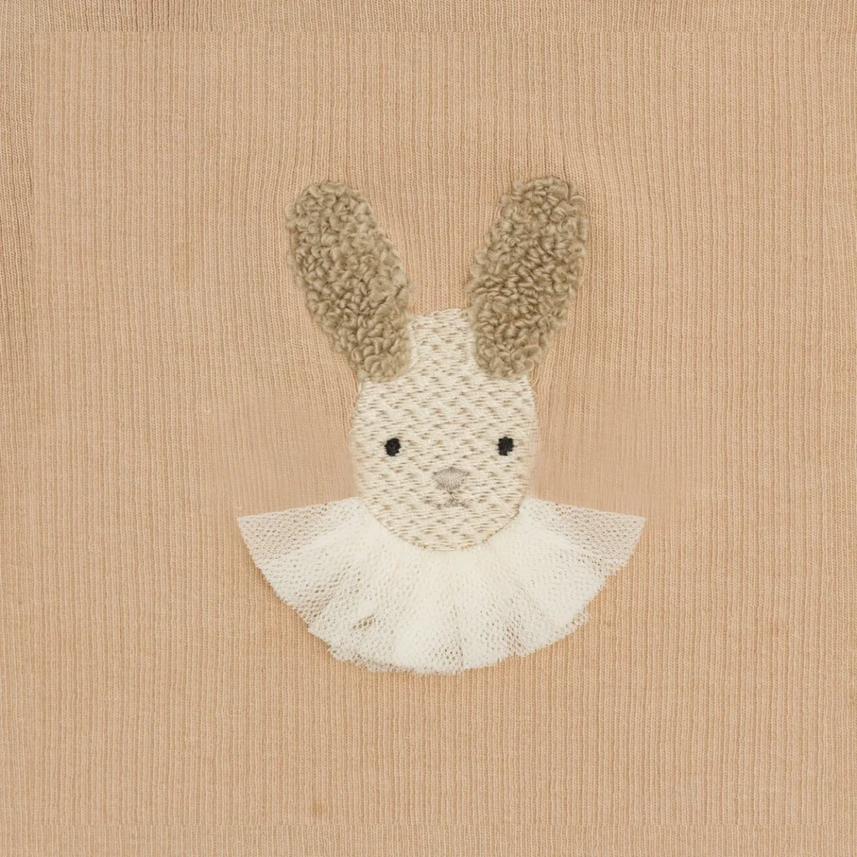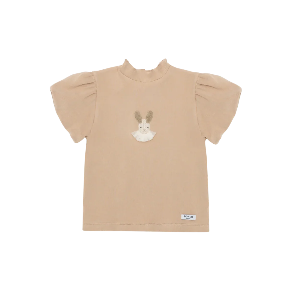 Bunny hugs! The slip-on Nowien top with embroidered rabbit character is a delightful addition to any summer wardrobe. Complete with soft ribbed fabric, a ruffled collar and sweet short puff sleeves.