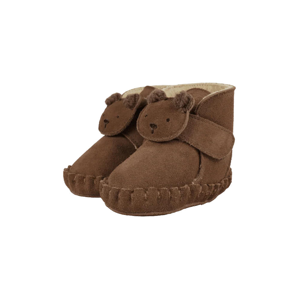 Bear-y exciting! The Pouty Booties are the perfect choice for in-between seasons, supporting those long-awaited first steps. Carefully crafted from 100% premium suede, the booties feature easy-to-use Velcro fastening straps and a charming Donsje bear character with fluffy ear details.