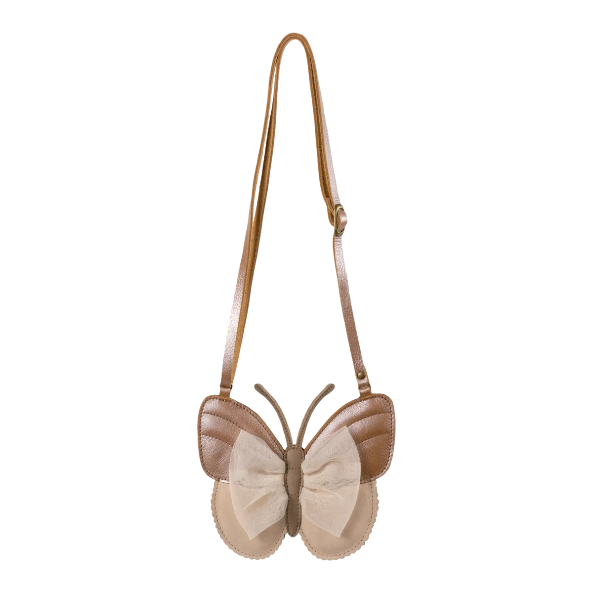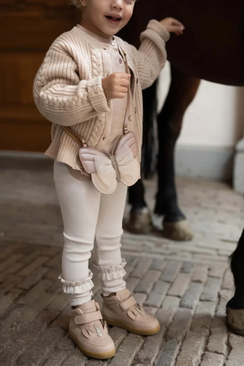 Dance and swirl this summer! The Vlinder Purse with a signature Donsje design and a 100% premium leather construction will be your little one’s favourite accessory for all their warm-weather adventures, play dates and treasure hunts. Equipped with a comfortable adjustable shoulder strap and a handy zipper running along the sides and top, this delicate purse surprises with beautiful tulle detailing.
