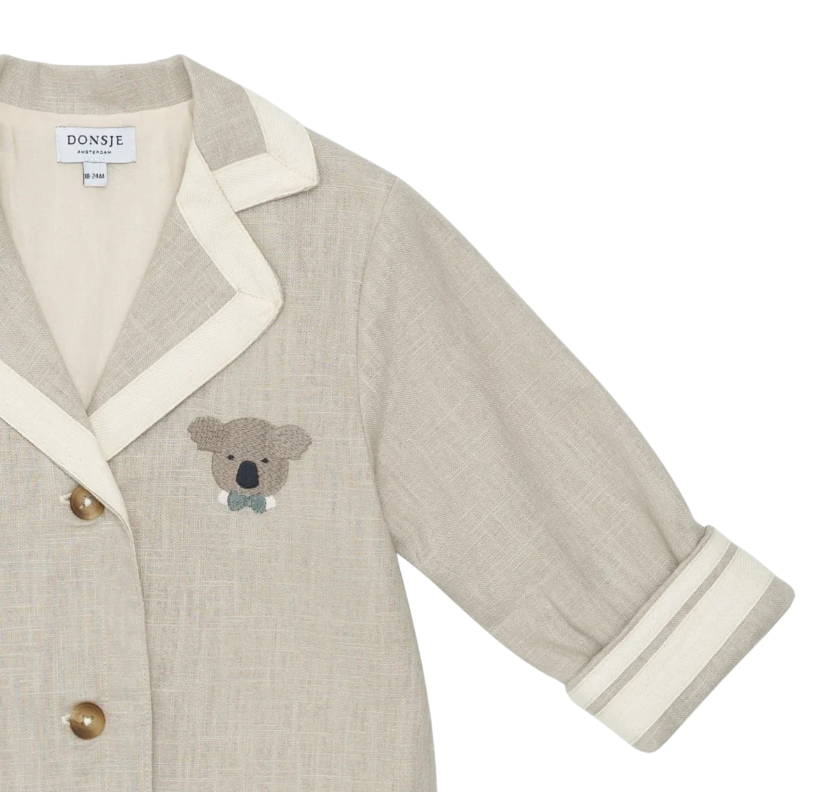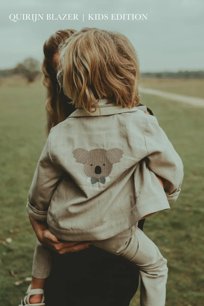 For summer celebrations! Keep your little one warm in style this season. The Quirijn Blazer evokes big smiles thanks to a charming koala embroidery embellishment on the back. A single-breasted silhouette with a notch collar and button fastening through the front make this blazer a stylish outer layer for cool evenings and chilly days. Please note that the design of the Quirijn Blazer varies for babies and kids. In the lifestyle pictures, you can see that the baby version features an adorable koala embellishment on the front of the blazer, while the kids’ version has a larger embroidered koala decoration on the back.