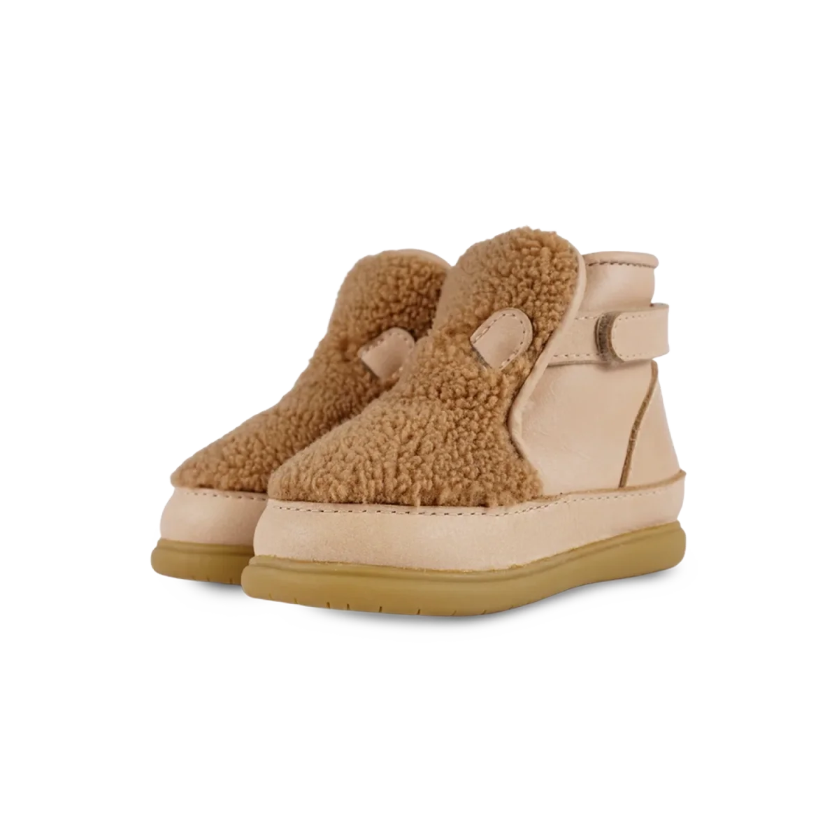 Chill steps ahead! Step into this winter in style with the Roumi shoes. Featuring signature Donsje animal characters, these adorable shoes have rubber outsoles for extra comfort and adjustable velcro fastening straps for easy use. Made from 100% premium leather. These toddler shoes are the perfect companion for outdoor adventures, offering just the right support for those first steps. The flexible outsole with a slightly elevated heel provides enhanced support. The adjustable velcro fastening strap ensures a snug fit around the ankle, while the reinforced structure, particularly around the heel, provides the necessary support and stability for your little one’s growing feet.