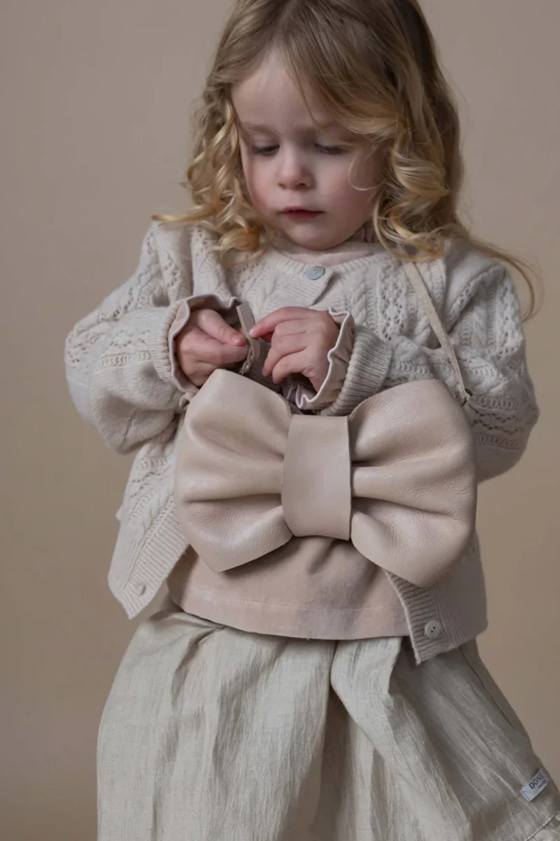Put a bow on it! Delight your little one this season with a beautiful first accessory, the Roxlyn shoulder bag. Shaped like a lovely bow, this delicate bag comes with an adjustable shoulder strap and a zip fastening at the back for enhanced comfort.