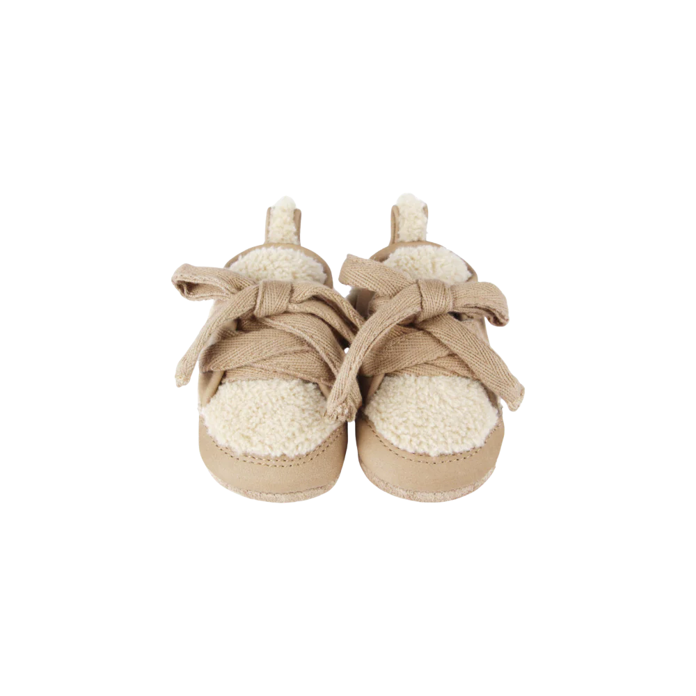First steps await! The Semmi are the most adorable little shoes for those long-awaited first steps! Carefully crafted from 100% premium cow leather and lined with faux fur, the shoes feature beautiful soft faux fur details, cotton shoe laces, and steady rubber outsoles to support those tiny feet.