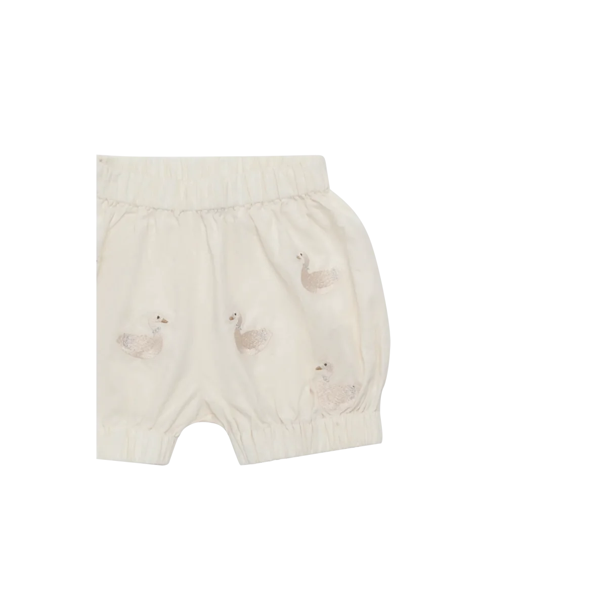 Summer days are made effortless with the Shimmer Swan Bloomers, featuring a stretchy waistband, elasticated leg openings, and delicate swan embroidered details.