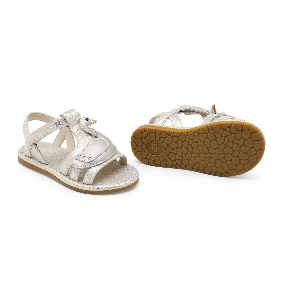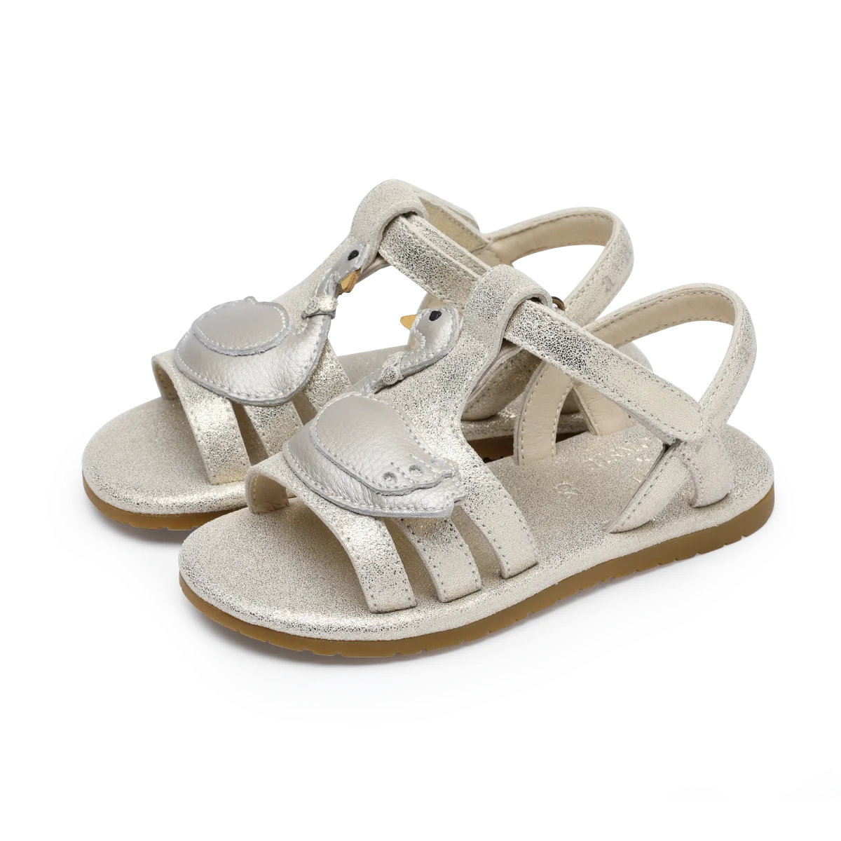 The Shimmer Swan Sandals are destined to be summer favourites with their elegant, swan-inspired design. Crafted from 100% premium leather and adorned with shimmering details, these sandals effortlessly combine beauty and comfort. With rubber outsoles and adjustable Velcro straps, they offer the perfect balance of style and practicality for sun-filled adventures.