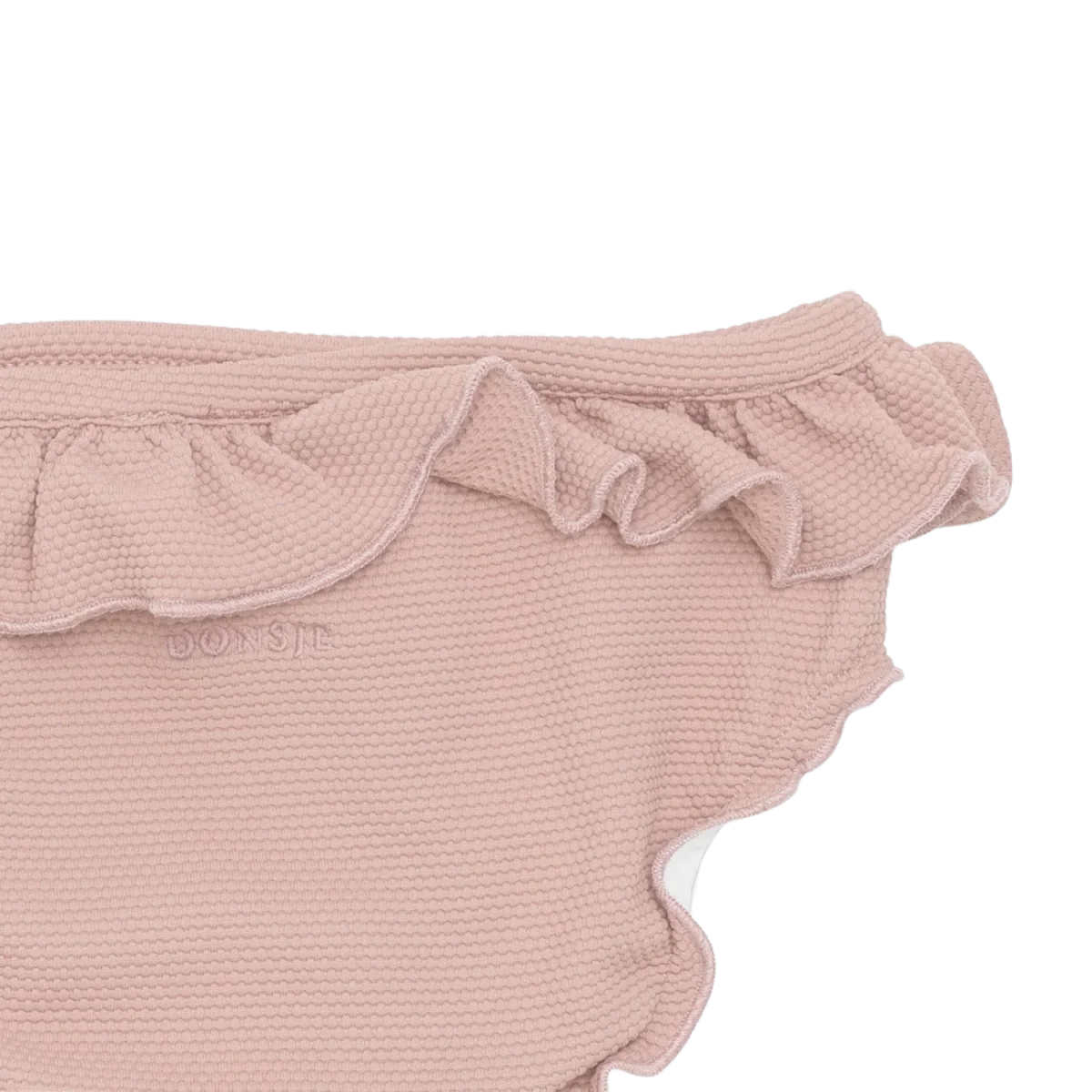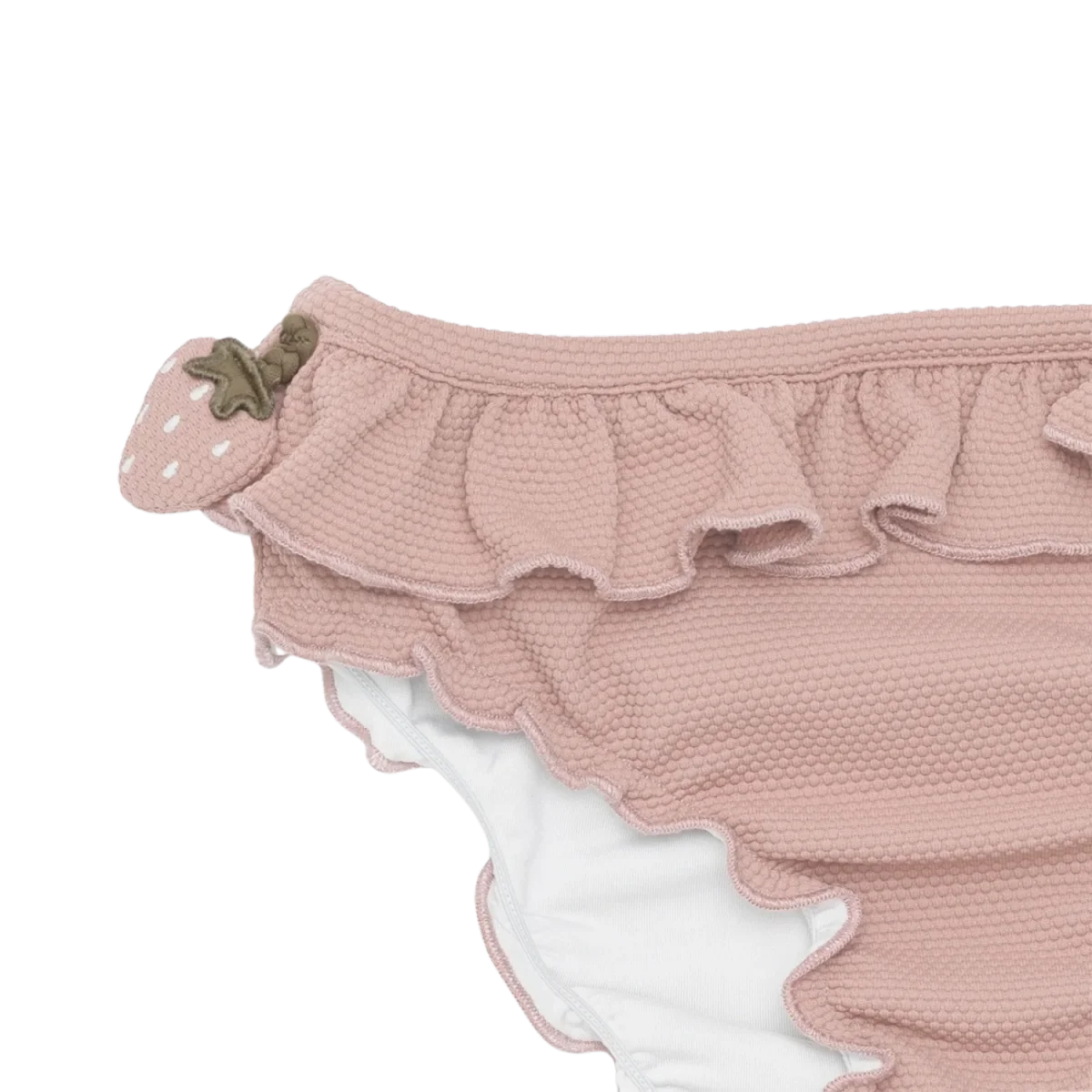 The Sisi swimming briefs are perfect for summer dips in the sea or pool. Featuring UPF 50+ protection, a cute ruffle edge at the top and strawberry patches at each side, attached to the braided cord. Match the Sisi swimming briefs with the Nia swim shirt to create a head-turning beach look.