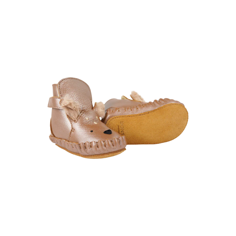 Little feet, woodland treats! The Smikki booties are an enchanting choice for tiny feet. Featuring adorable fur details, velcro fastening straps, and a playful deer design, these booties keep little ones cosy and oh-so-cute.