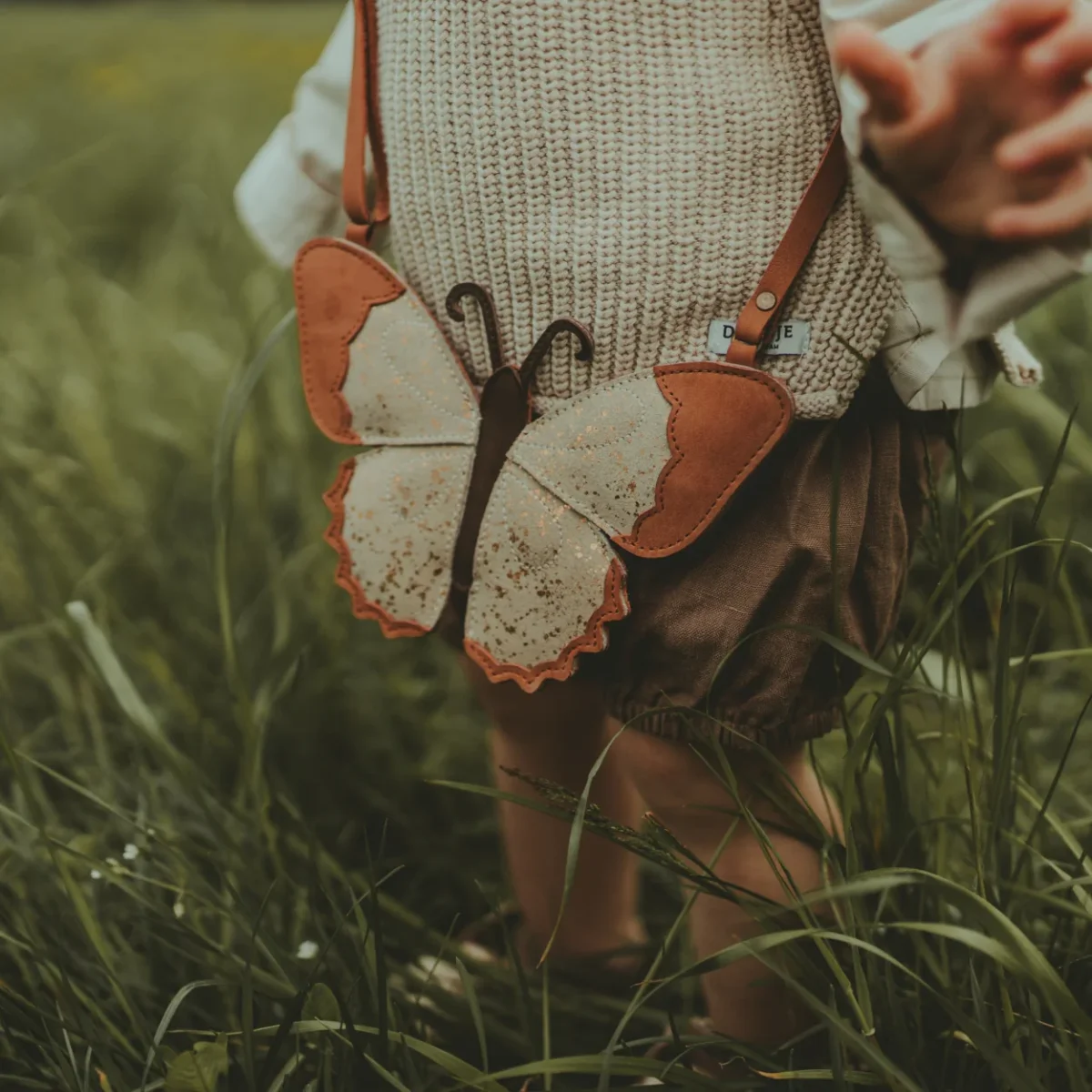 Flutter with joy! The Toto Purse is a stylish addition to every mini wardrobe. Crafted from 100% premium leather, this delicate purse has a dreamy Papillon design with metallic leather details, an adjustable leather shoulder strap, and a zip fastening at the back. The Tozo Purse is a lovely summer accessory that will make any outfit stand out.
