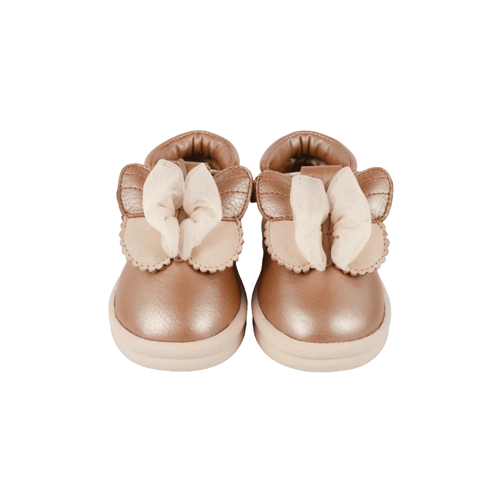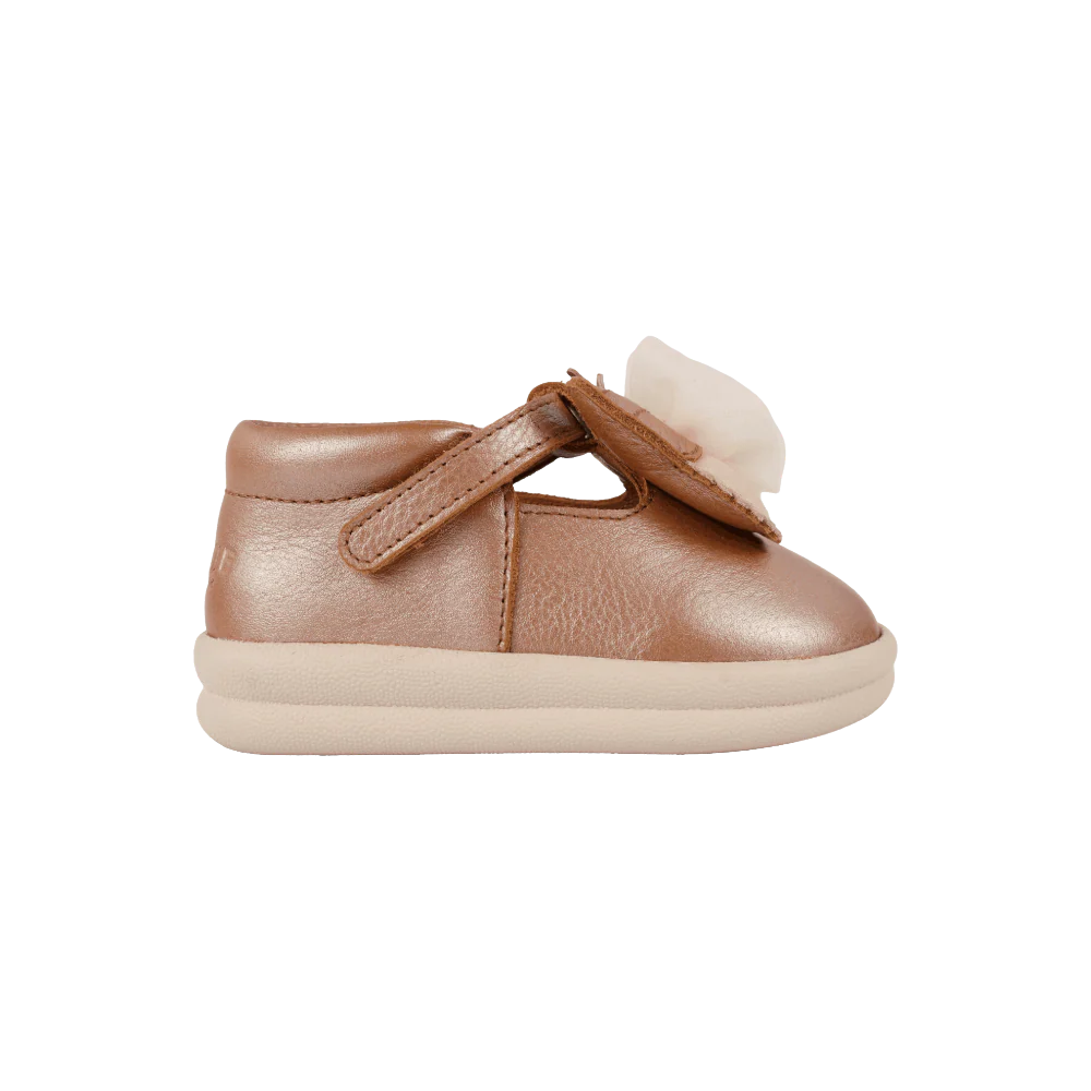 The Vlindy Shoes will surely steal all smiles thanks to the stylish metallic design and adorable butterfly tulle details. These toddler shoes are the perfect companion for outdoor adventures, offering just the right support for those first steps. The flexible outsole with a slightly elevated heel provides enhanced support. The adjustable velcro fastening strap ensures a snug fit around the ankle, while the reinforced structure, particularly around the heel, provides the necessary support and stability for your little one’s growing feet.