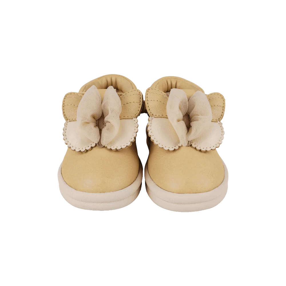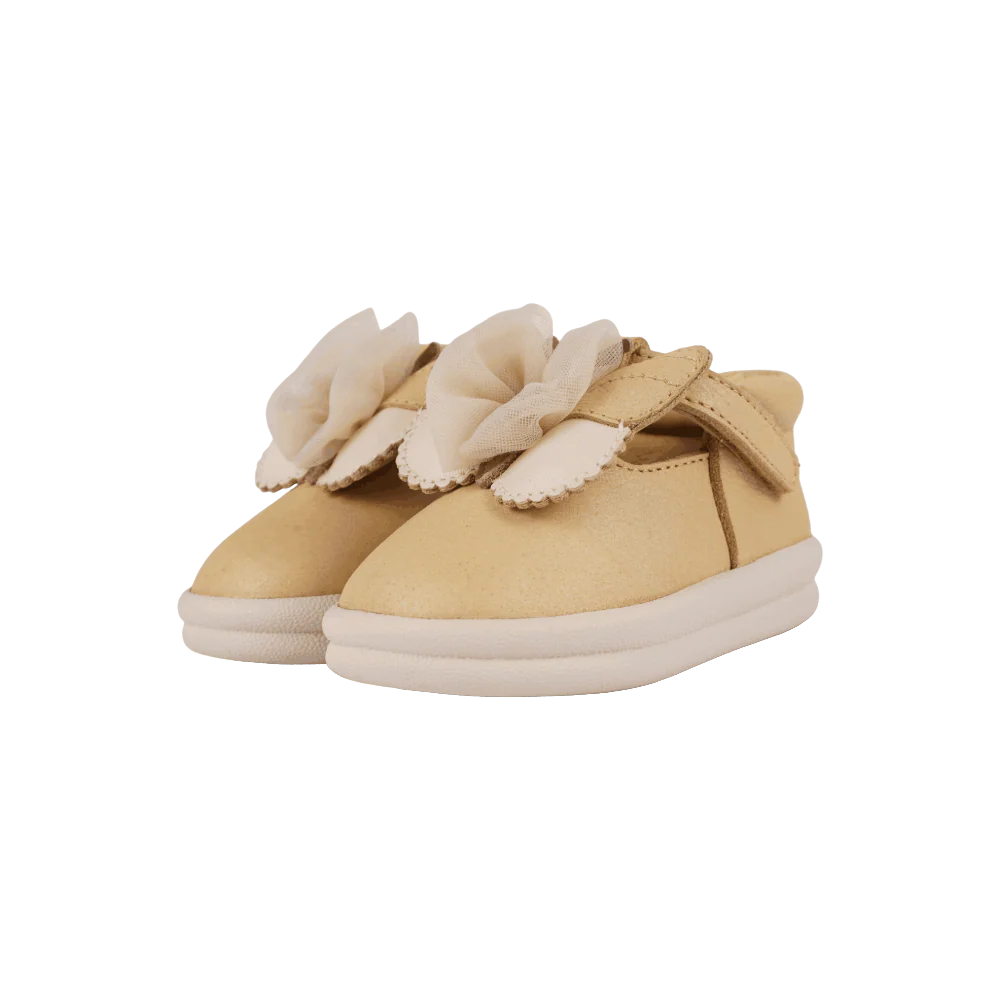 The Vlindy Shoes will surely steal all smiles thanks to the stylish metallic design and adorable butterfly tulle details. These toddler shoes are the perfect companion for outdoor adventures, offering just the right support for those first steps. The flexible outsole with a slightly elevated heel provides enhanced support. The adjustable velcro fastening strap ensures a snug fit around the ankle, while the reinforced structure, particularly around the heel, provides the necessary support and stability for your little one’s growing feet.