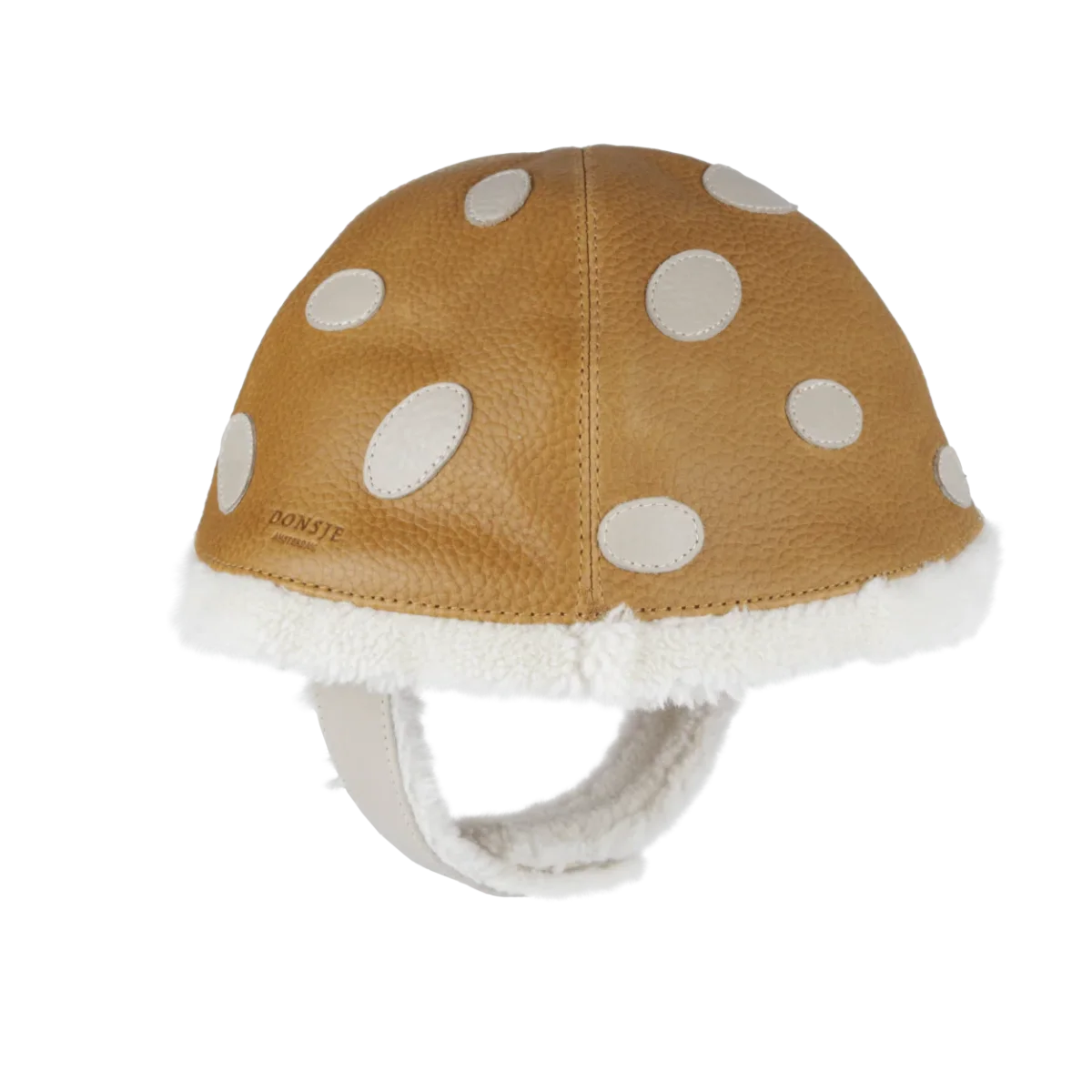 I love you so mush! An instant winter wardrobe classic, the Wilder Hat with a playful spotted mushroom theme will keep little heads warm; made from 100% premium cow leather and complete with cosy faux fur lining.